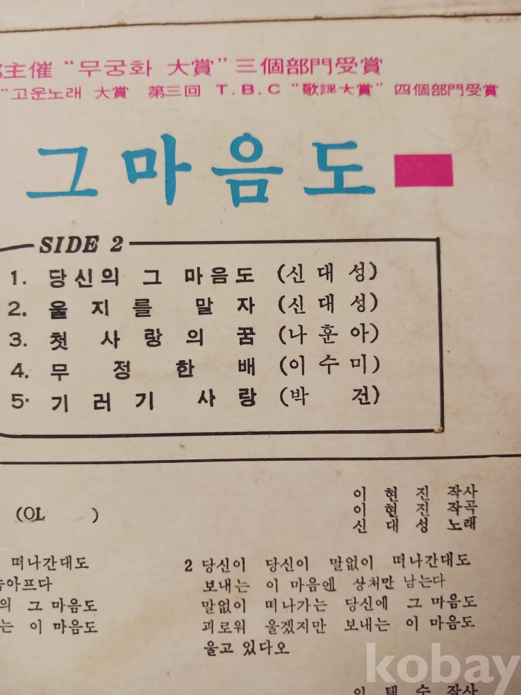 | 자켓상태 | EX : 약간의 마모, 모서리 찢김 존재 | 음반상태 | EX : 재생에 영향 없는 가벼운 기스 존재 | 발매정보 | 초반 | 가사지여부 | 무 |