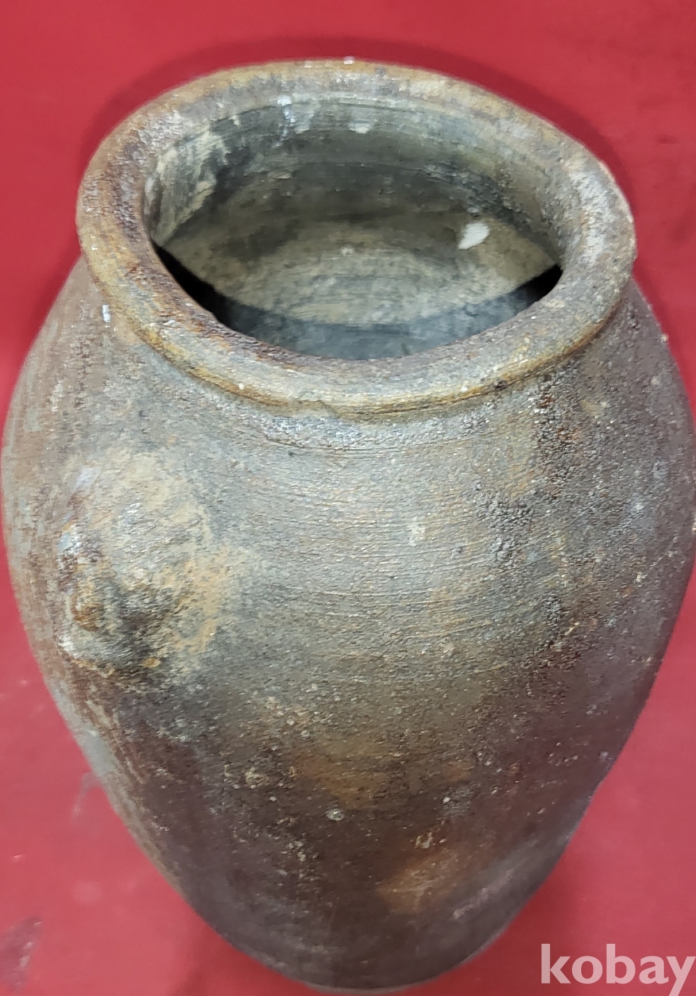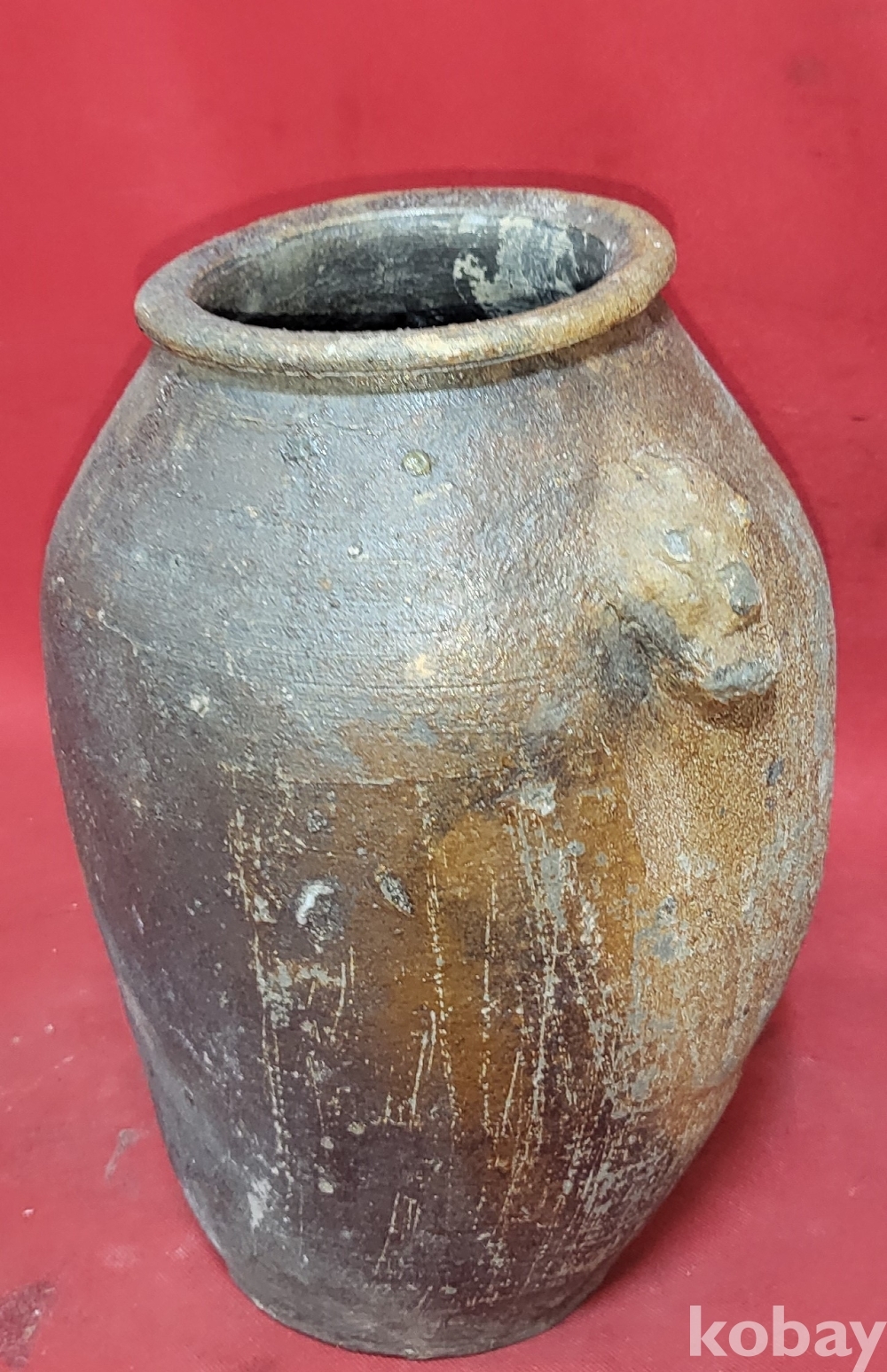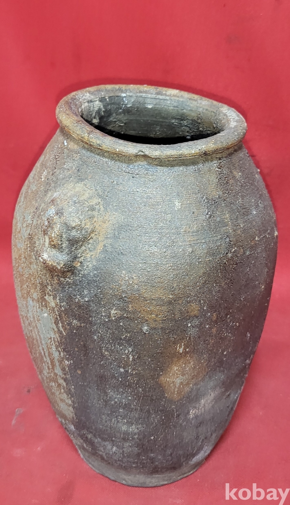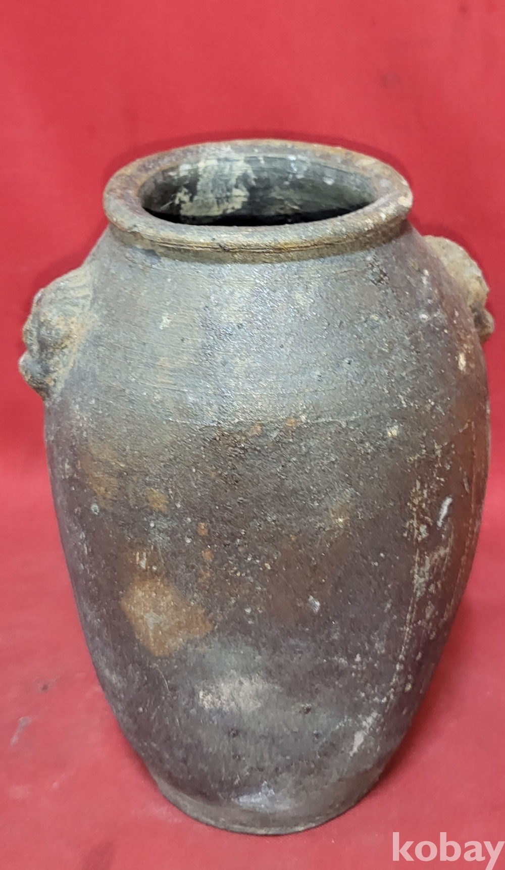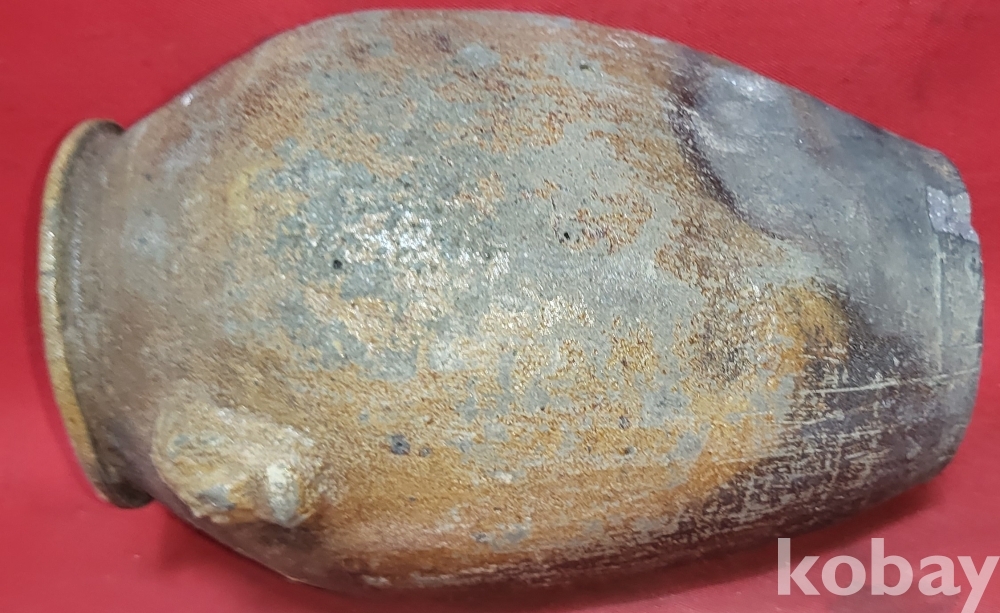 조선시대 이상의 연대 갖춘 토기로 만든 양쪽 귀가 달린 병으로 출토품입니다,