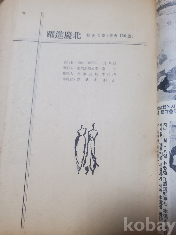 1. 약진경북 통권 110호, 경상북도, 1965년, 142쪽, 상태 상, 사진 참조