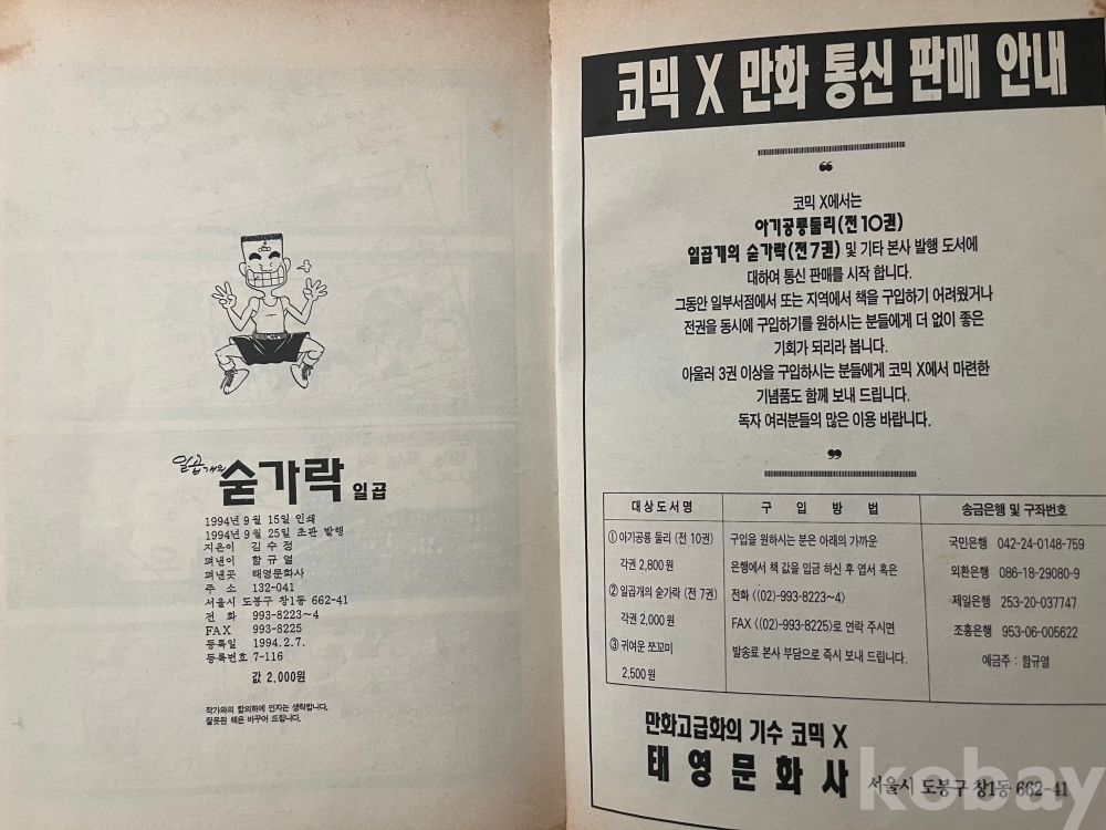 우수 합니다. (1994년 9월25일 7권 까지 순차적으로 초판이 발행되었습니다)