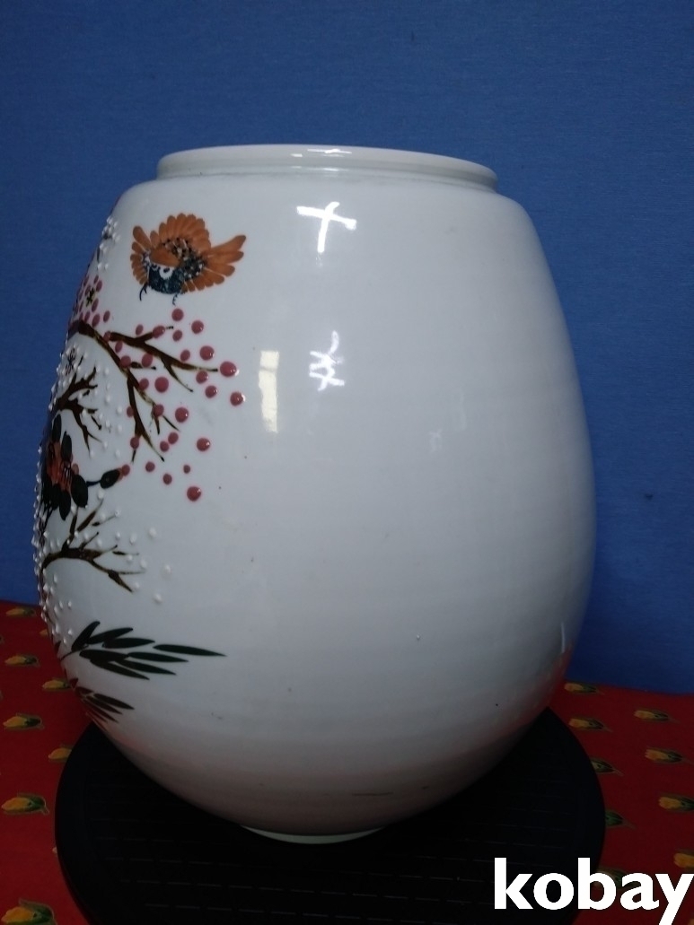 매화 꽃에 새가 돌출로 아름답게 표현된 도자기 입니다.