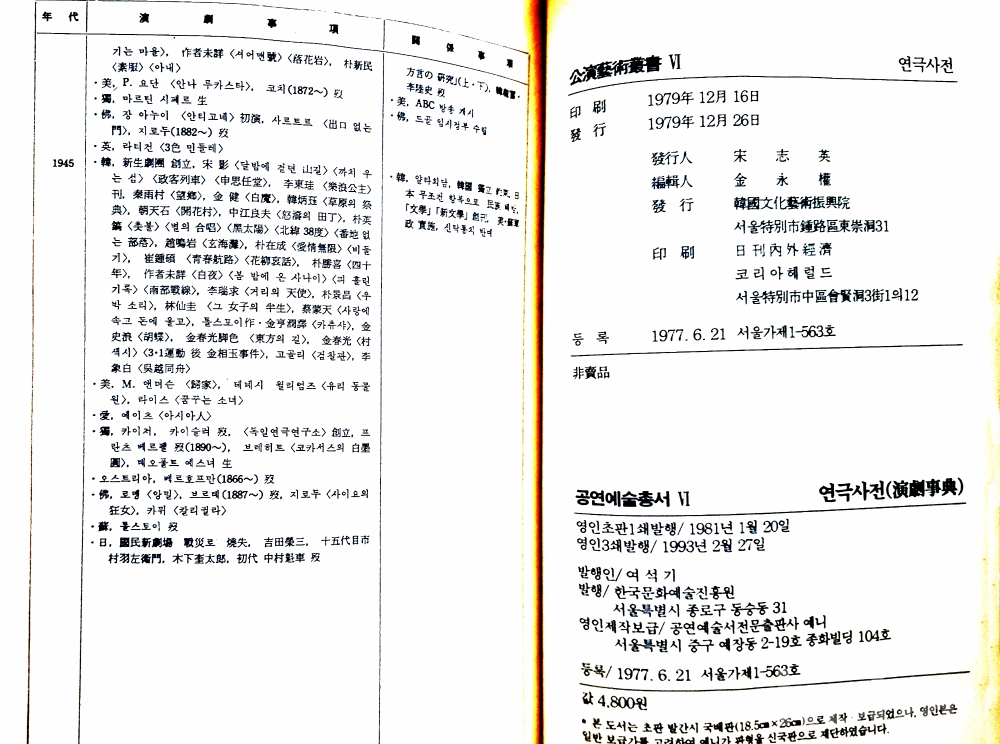 (한국문화예술진흥원 刊. 공연예술총서 Ⅵ. 공연예술전문출판사 '예니')