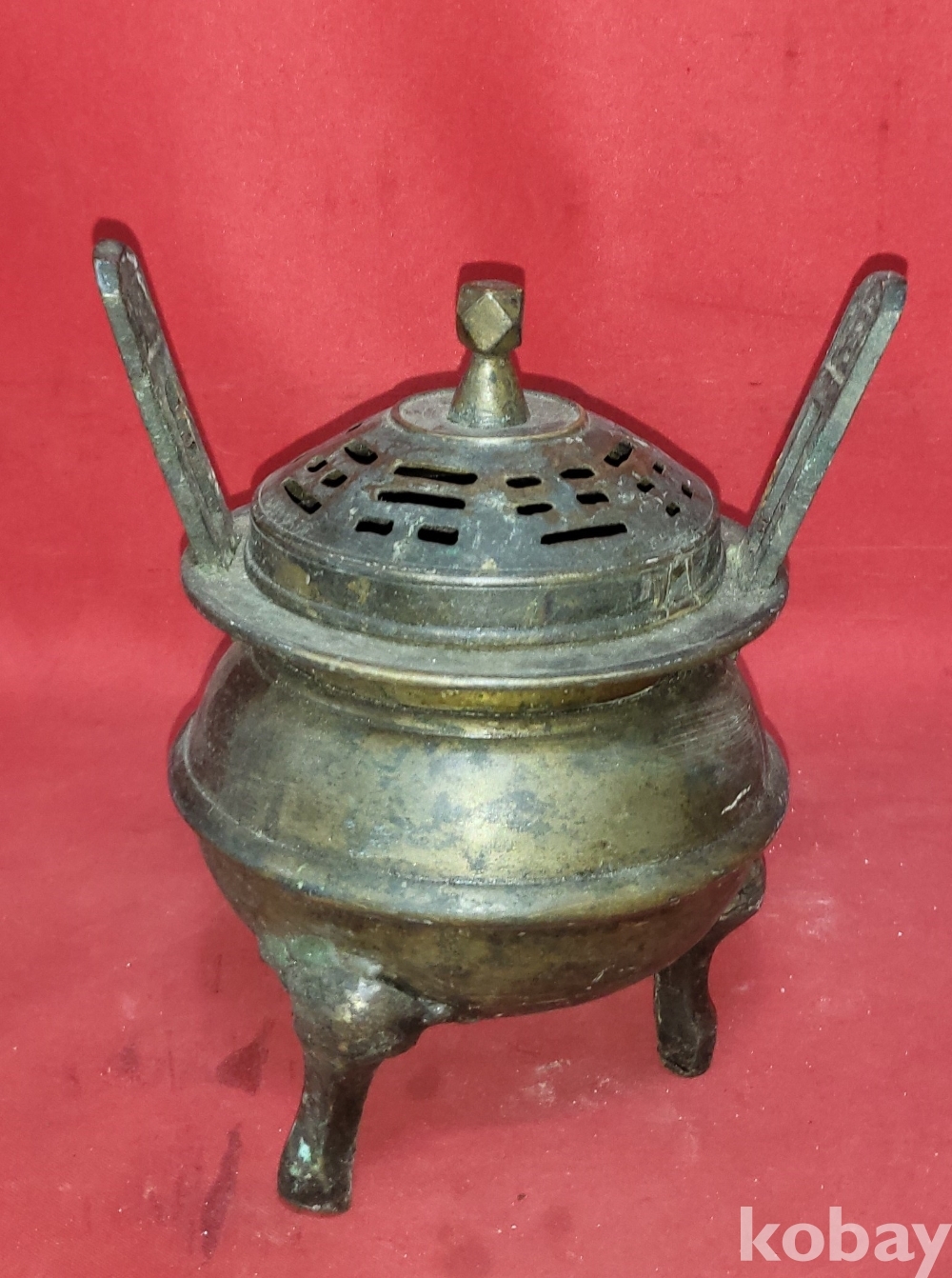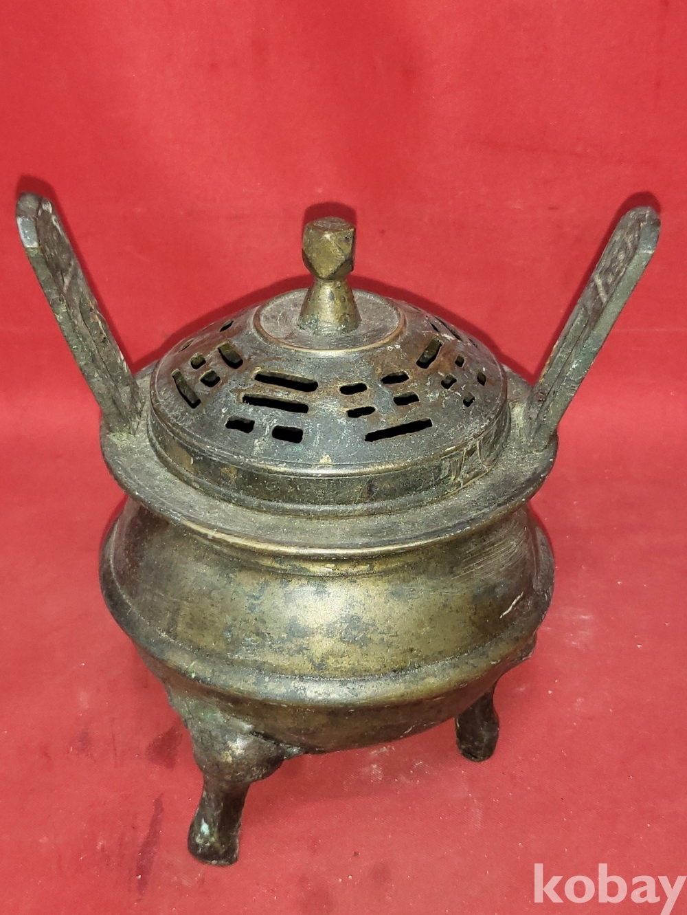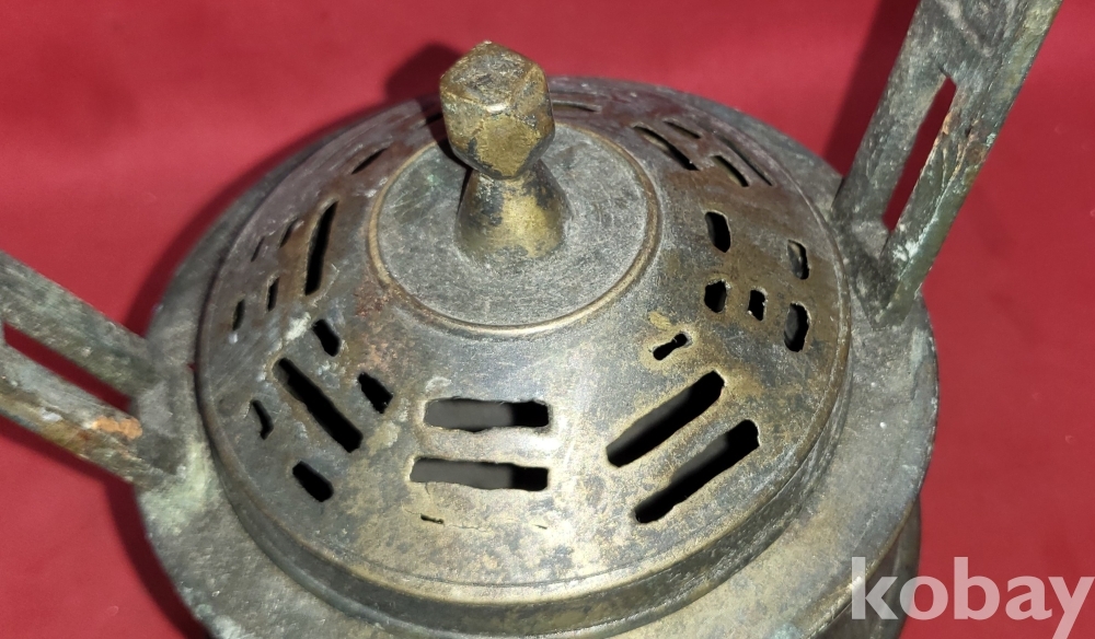 조선시대 청동((靑銅)으로 만든 8괘 문양 손잡이는 12면체 삼족 청동향로(靑銅香爐)입니다,