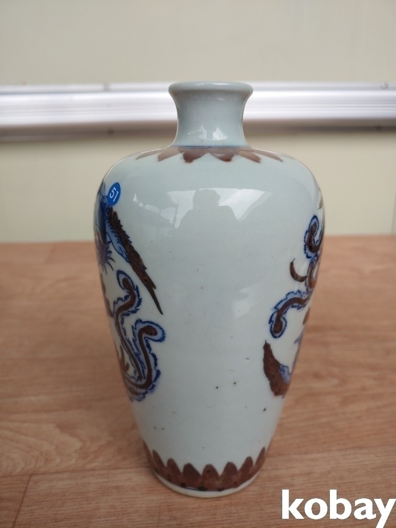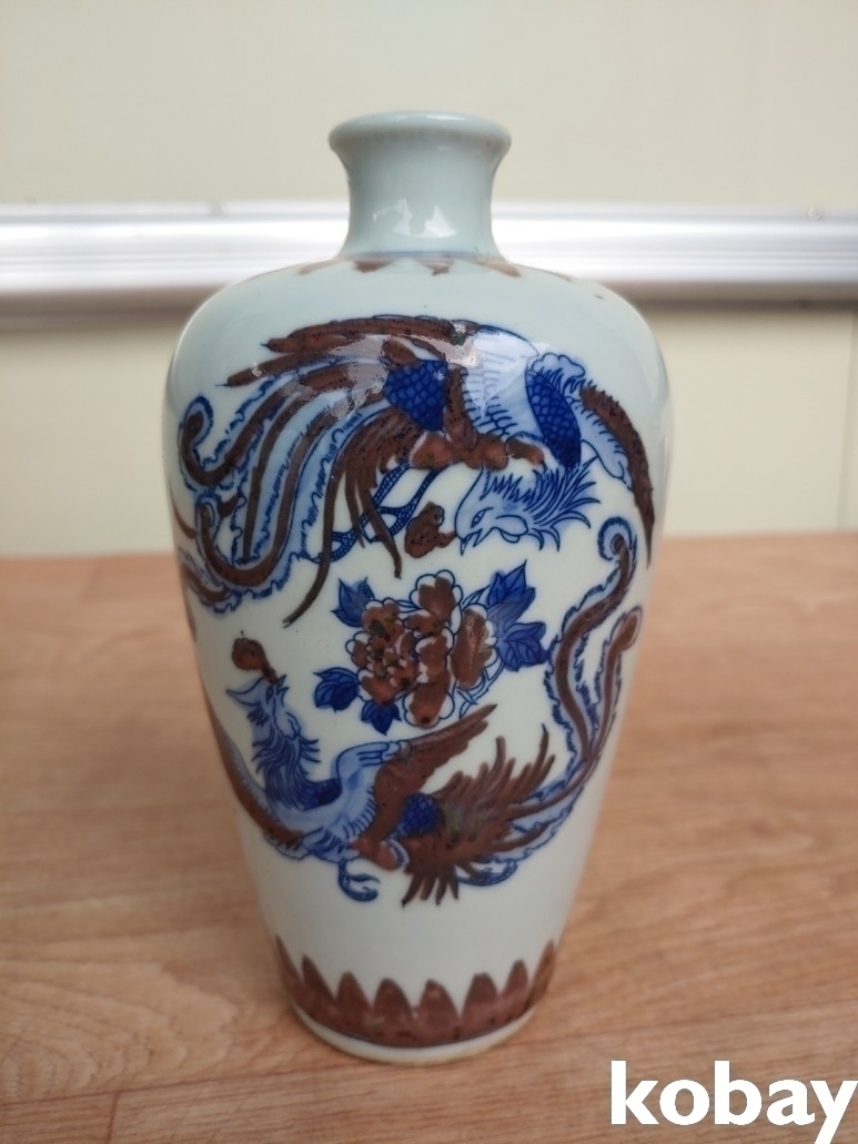 봉황새 2마리가 양면에 있는 병 도자기 입니다.