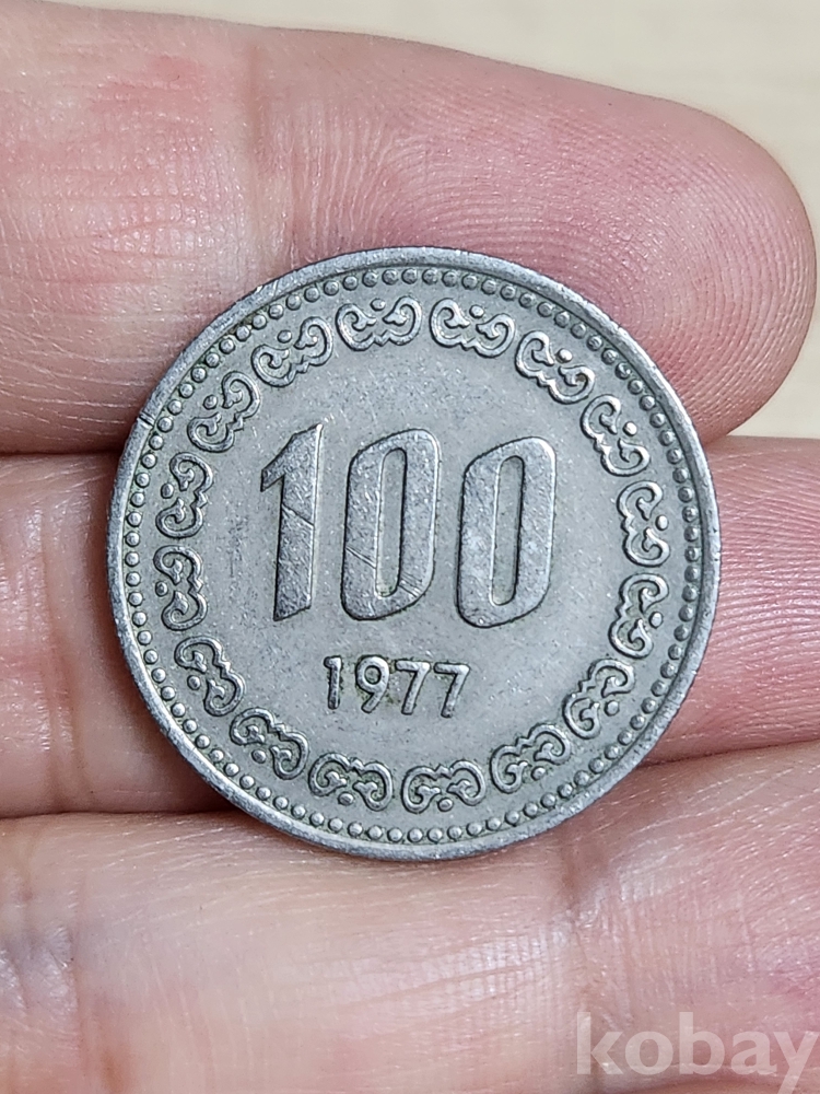 한국주화 특년도 1977년 100원 눈도안 다살아있음