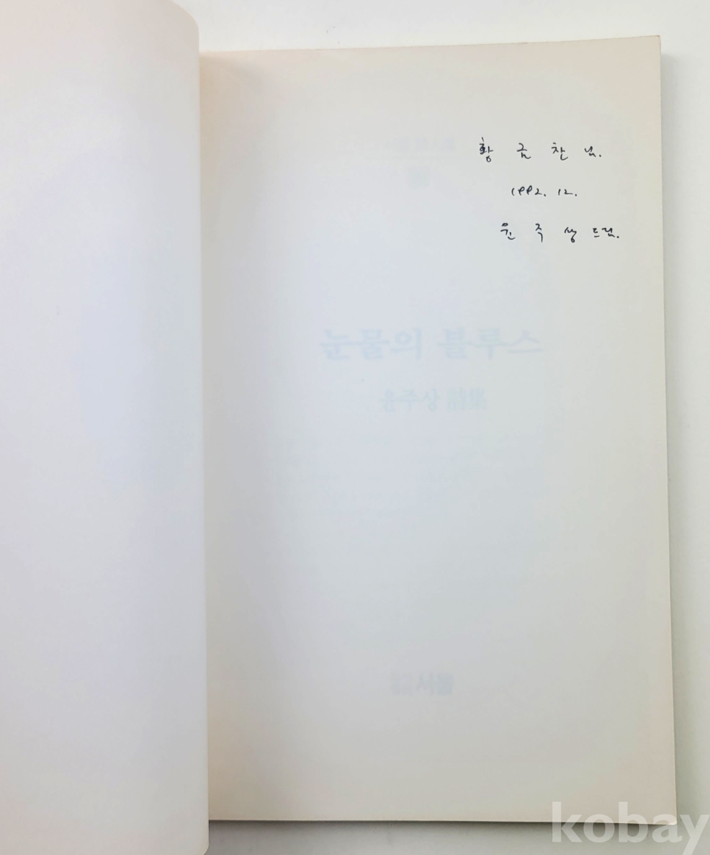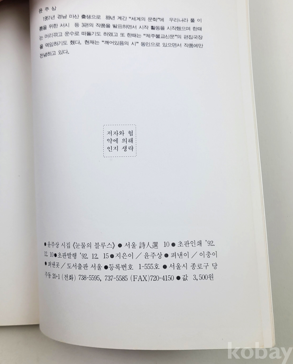 물 품 명 | 윤주상 / 눈물의 블루스 / 서울시인선(10) / 1992년 초판 / 도서출판 서울 |
