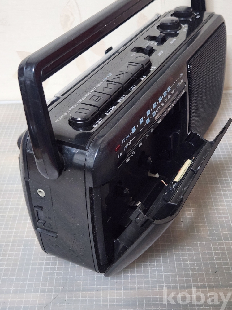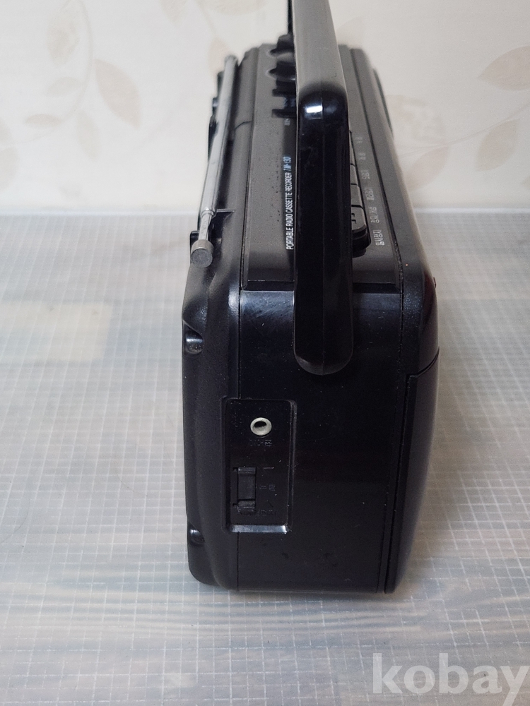 블랙 색상이고, AM/FM 라디오 청취 및 카세트 테이프 재생이 가능합니다
