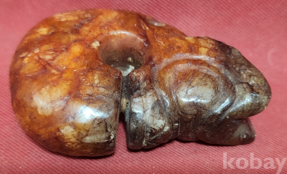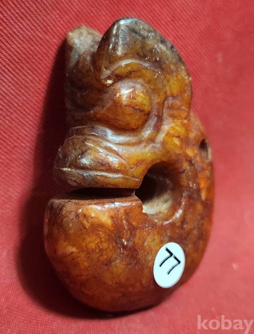 홍옥(紅玉)으로 완성된 인물(人物) 문양 조각품입니다,