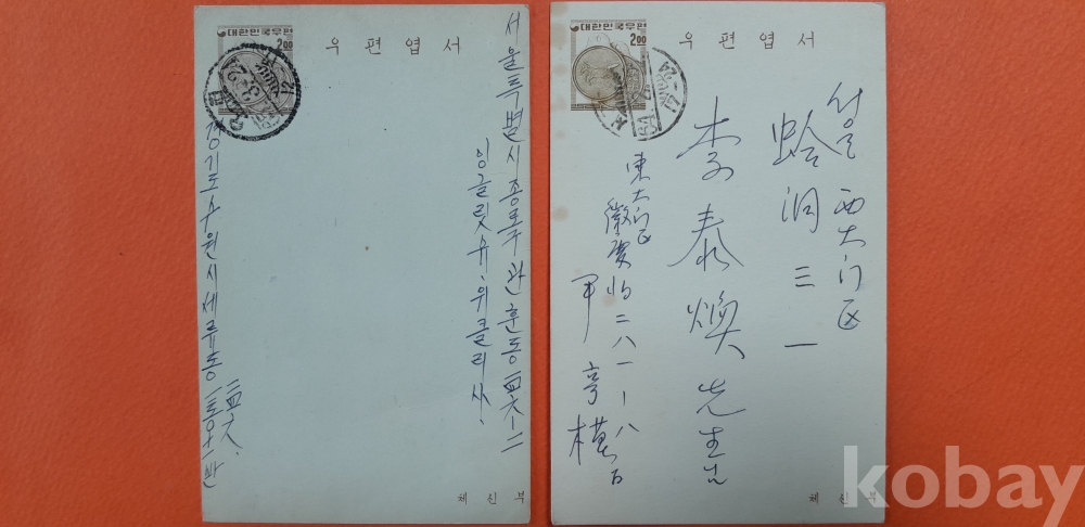 두번째 엽서는 좌변 변색, 우체국명이 선명하지 못합니다.