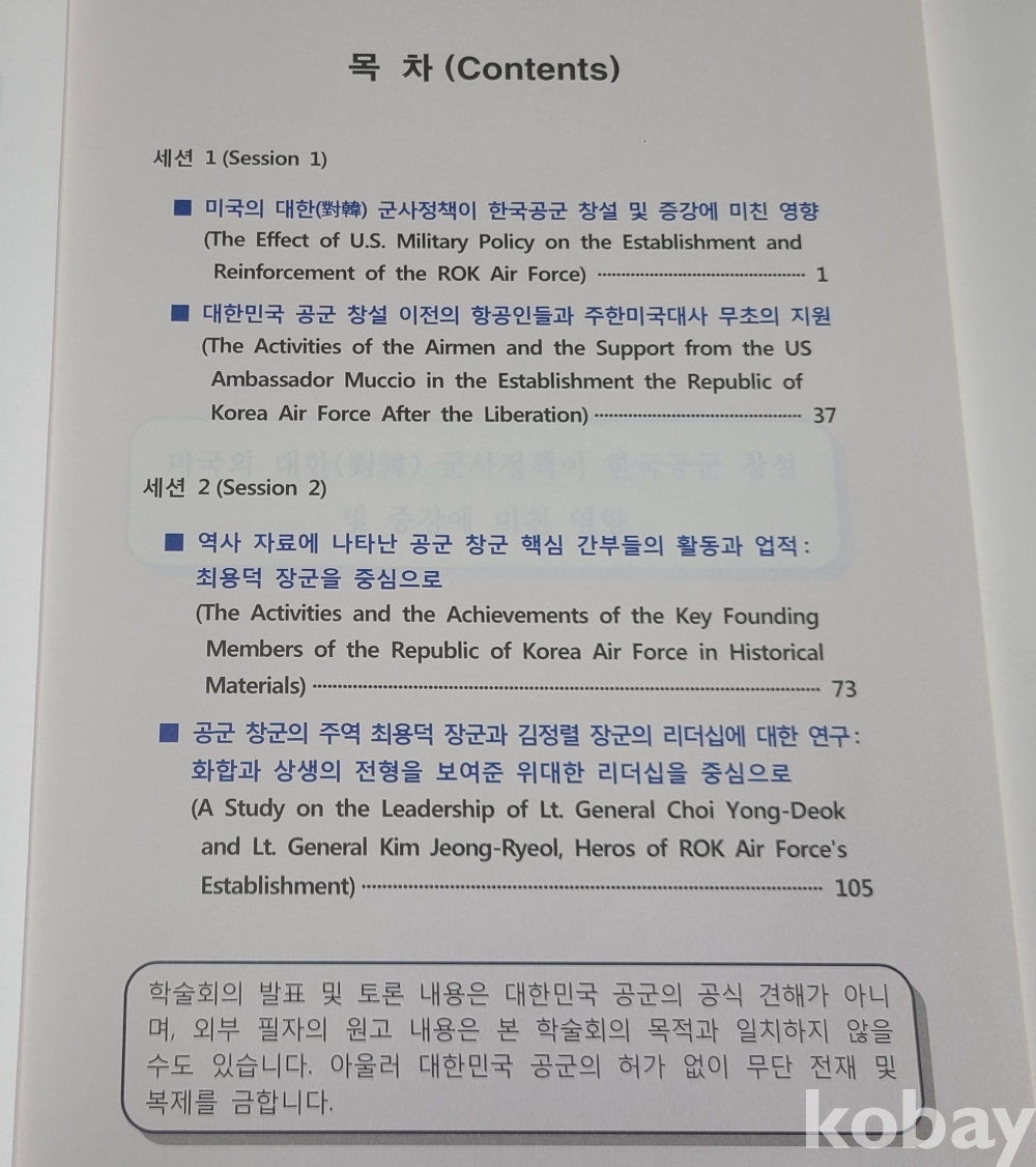 제2회 공군역사재단 학술회의 논문집: 2015년 공군역사기록관리단 발행.144페이지.
