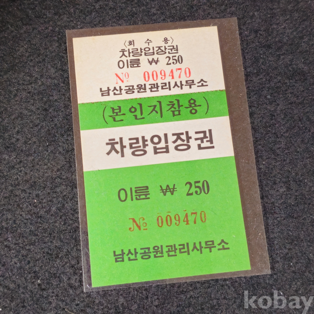 (((근현대사자료))) 오래전 남산공원관리사무소 차량입장권