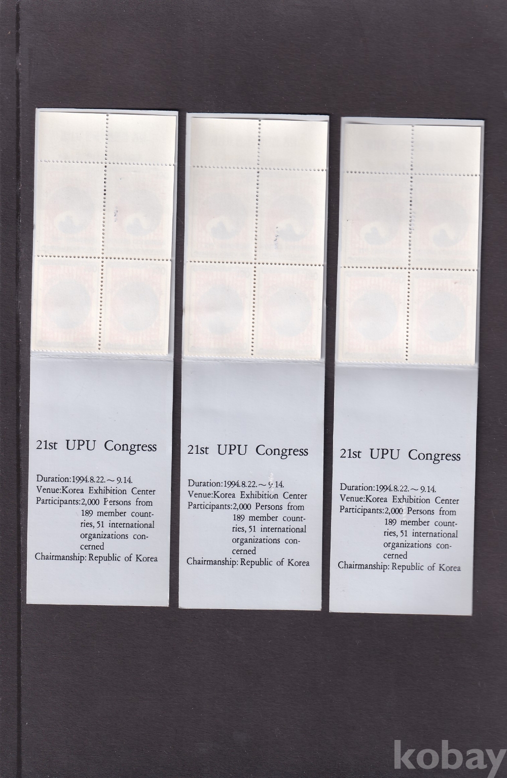 - 미사용 1994년 심볼마크 제 21차 만국우편연합총회기념 휴대용 우표첩 3매 일괄