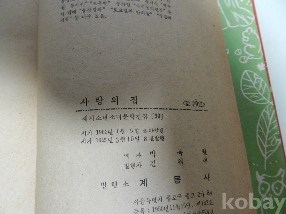 60년대 대표적인 계몽사 아동 문학집 입니다 유명한 박목월 역 입니다 전시용으로 활용하면 좋고 변색 낡음 책등 갈라짐 등 세월감 사용감 있을수 있습니다 이미지 참고바랍니다