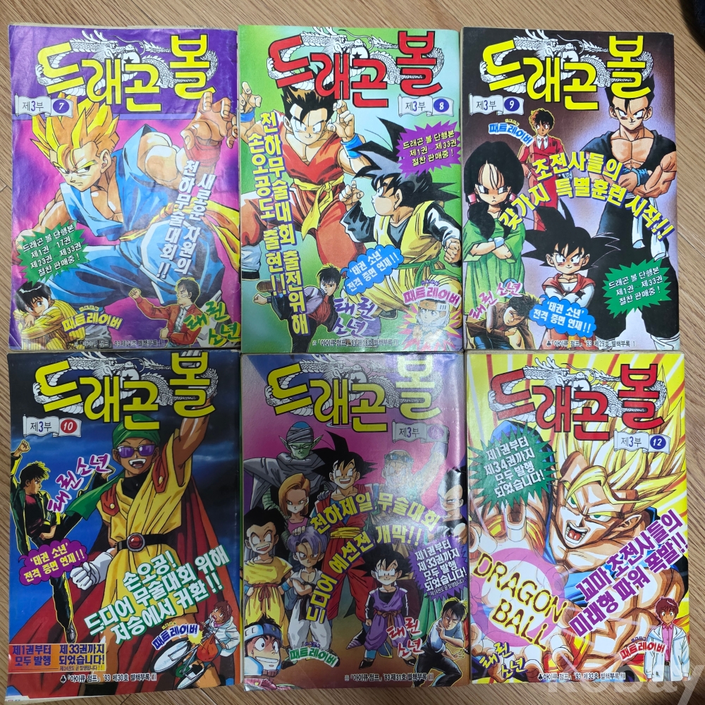 1993년에 발행된 소년만화잡지 ‘아이큐점프’ 별책부록판 드래곤볼 제3부 7~12권 세트입니다.