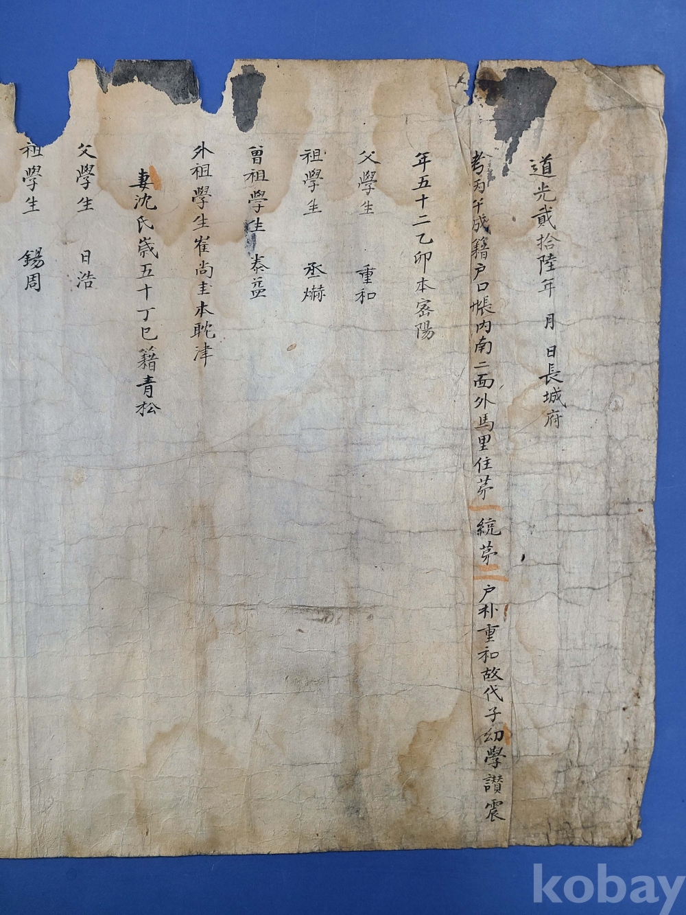 道光貳拾陸年(1846년) 長城府 戶口帳/상단부 일부 떨어짐