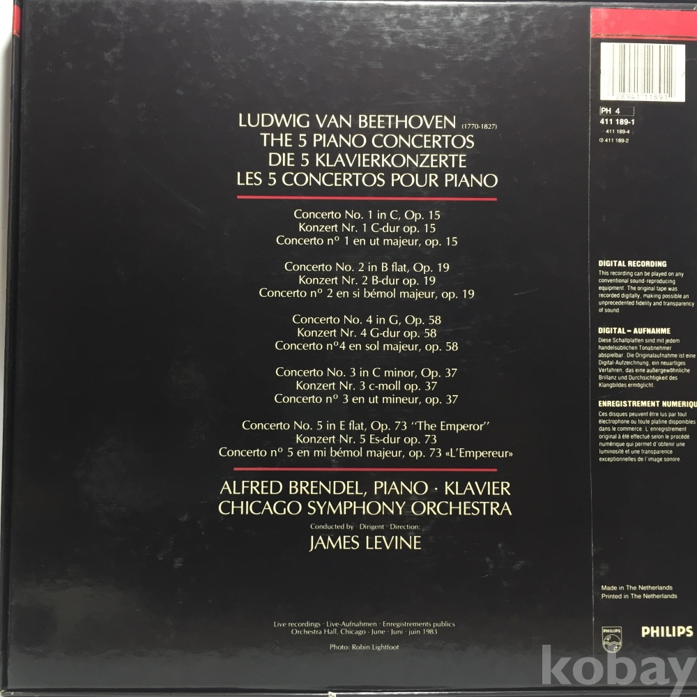 LP 350-52 BEETHOVEN THE 5 PIANO CONCERTOS DIE 5 KLAVIERKONZERTE - ALFRED BRENDEL 4LP 자켓 EX+ 알판 NM 84 년 수입반