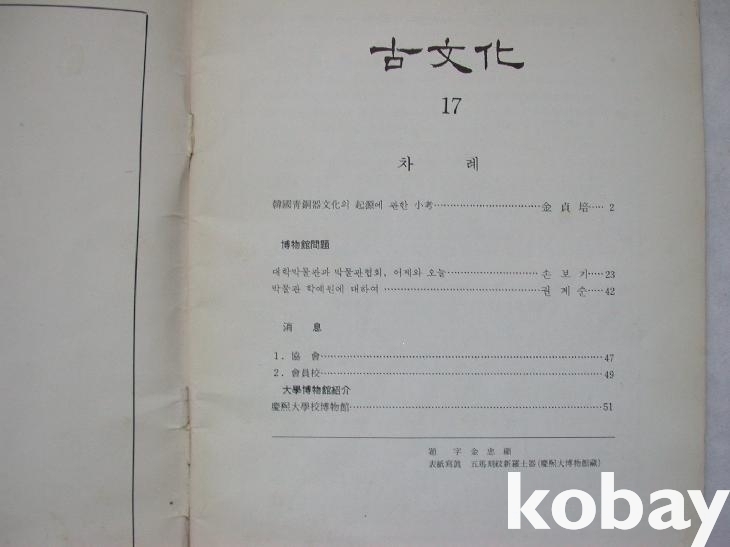 ▒ 1979년 한국대학박물관협회에서 발행한 <古文化> 제17집이다.