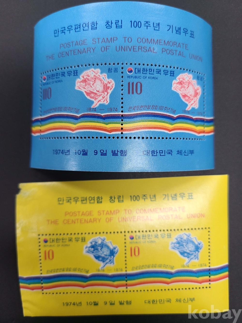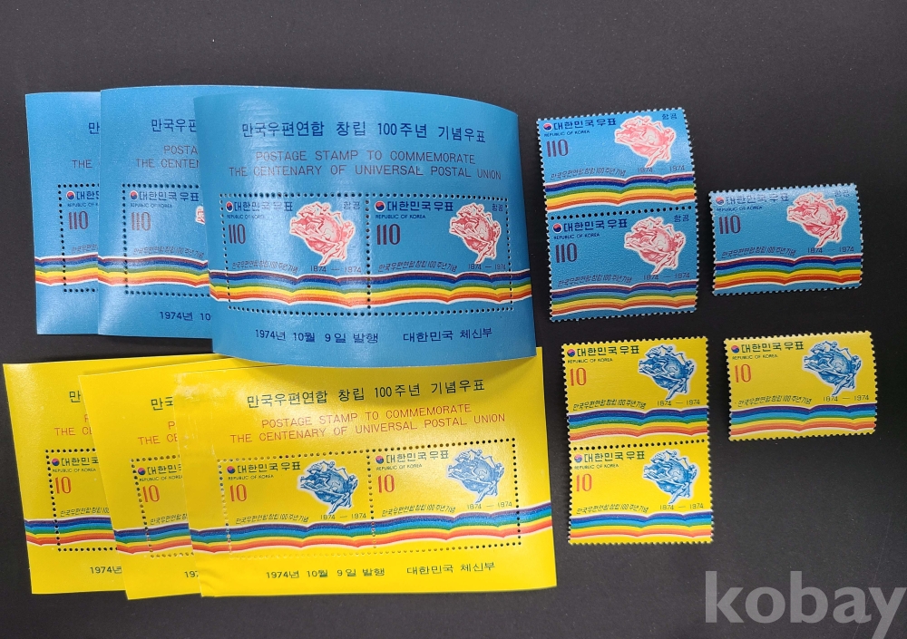 1974년 만국우편연합 100년 우표+s/s 3세트/시트 1매는 상태불량