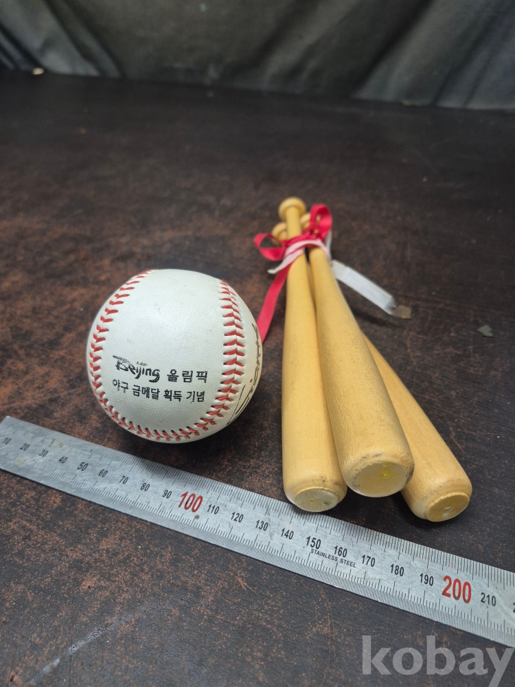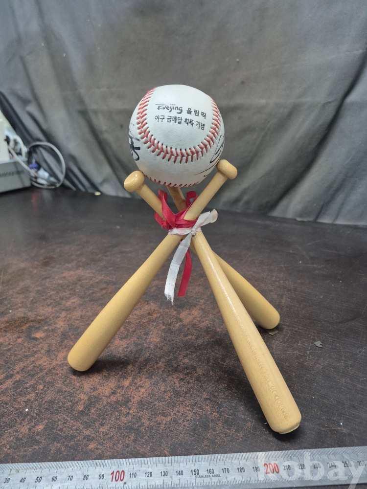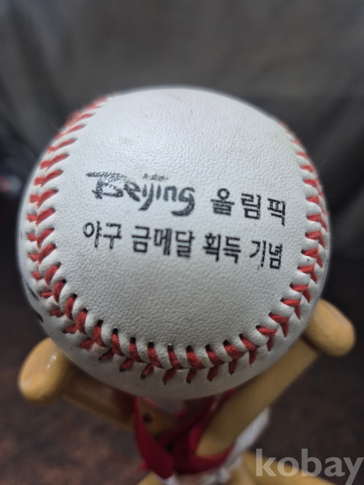 2022년 베이징 올림픽 금메달 획득기념 야구공 롯데 자이언트 등번호 47번 강민호 칠필싸인 야구공 과 배트3점일괄 2.5*2.5*23