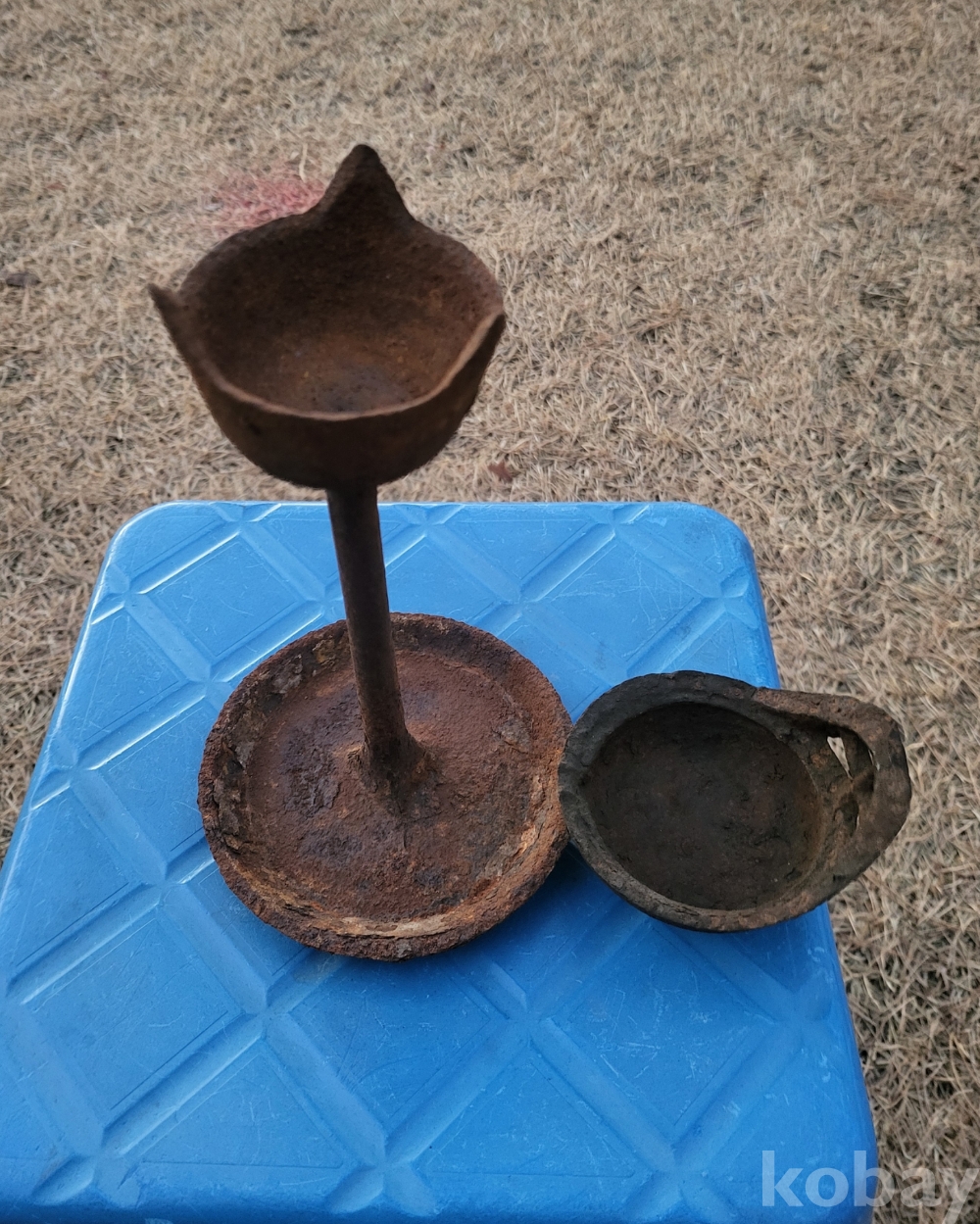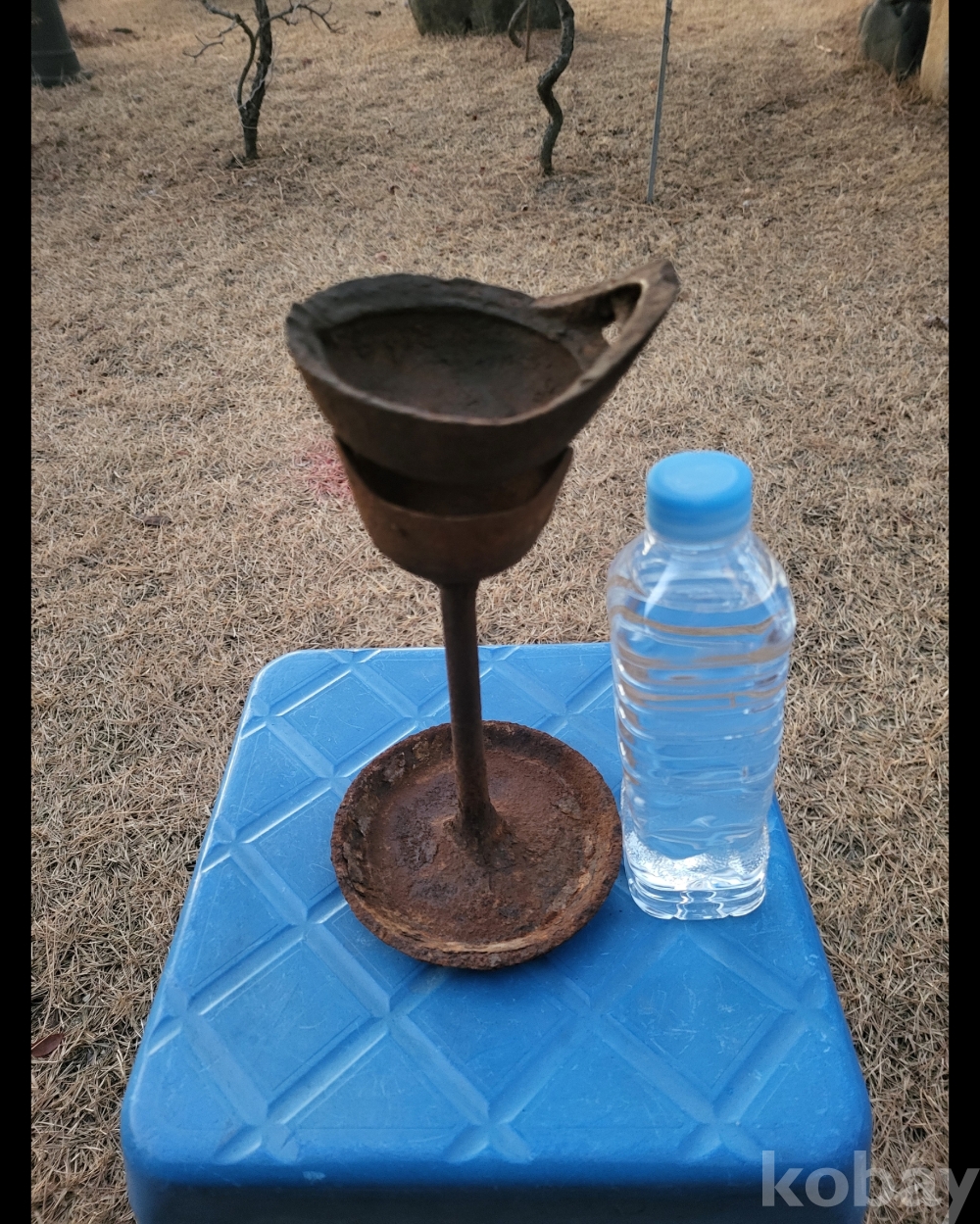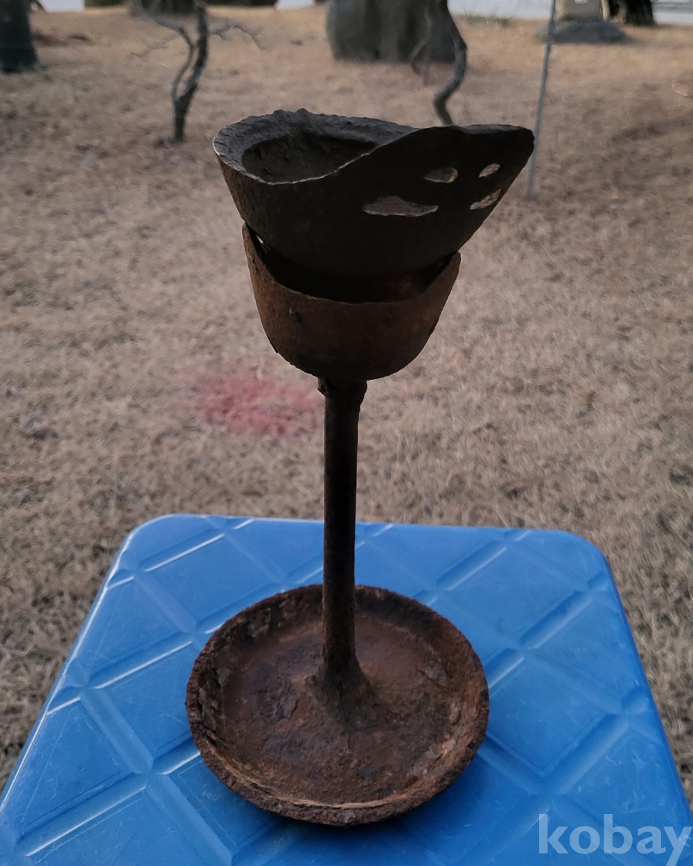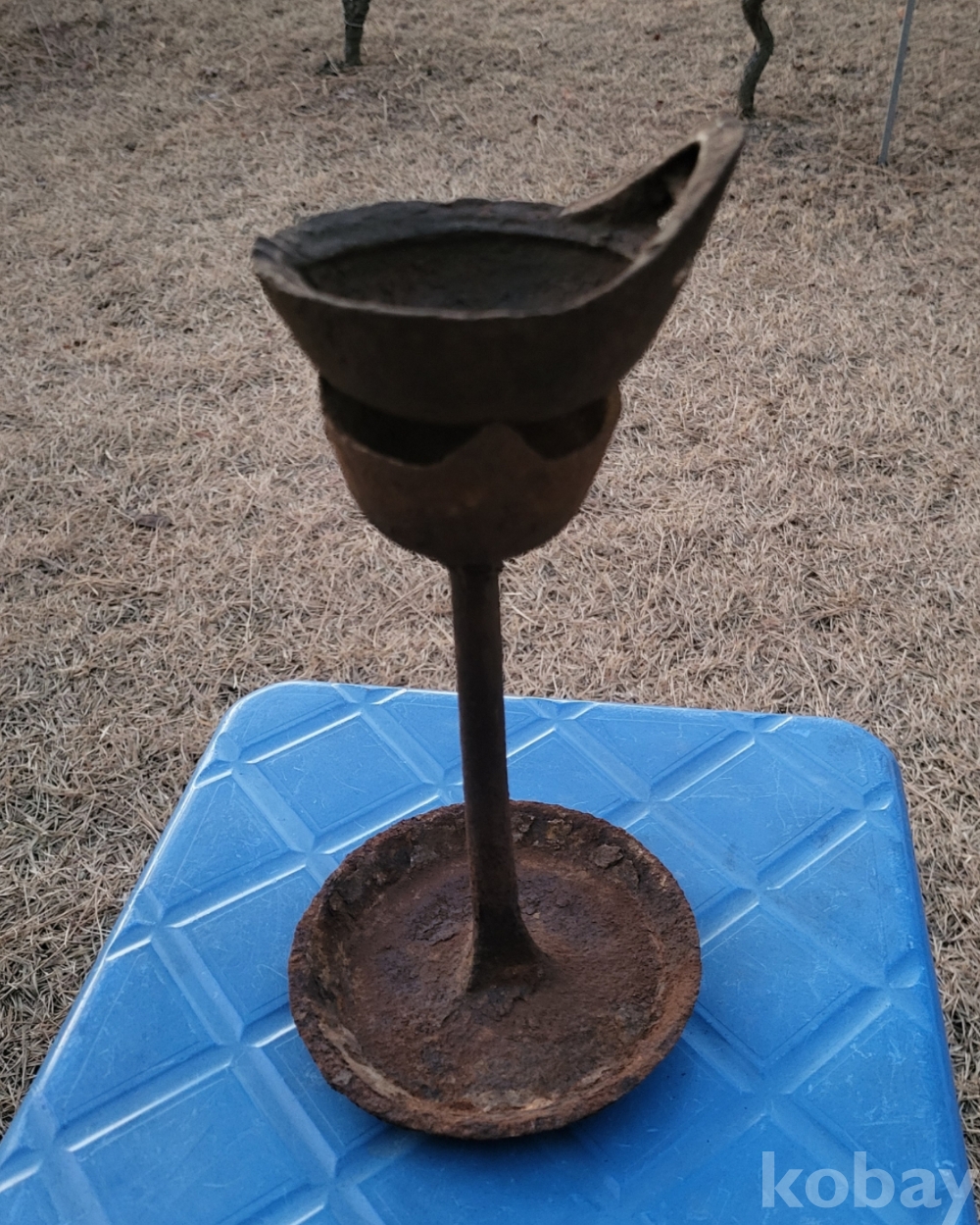 놋쇠로 만들어진 등잔대는 맛지만 언제 사용된것 인지는