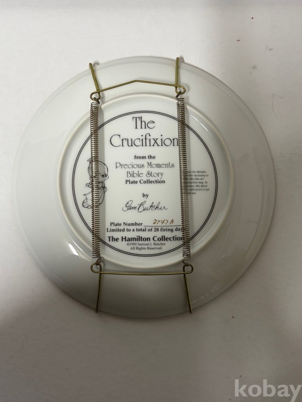 1992년 해밀턴 컬렉션에서 출시한 Precious Moments Bible Story Plate Collection 중 하나인 The Crucifixion 접시입니다.
