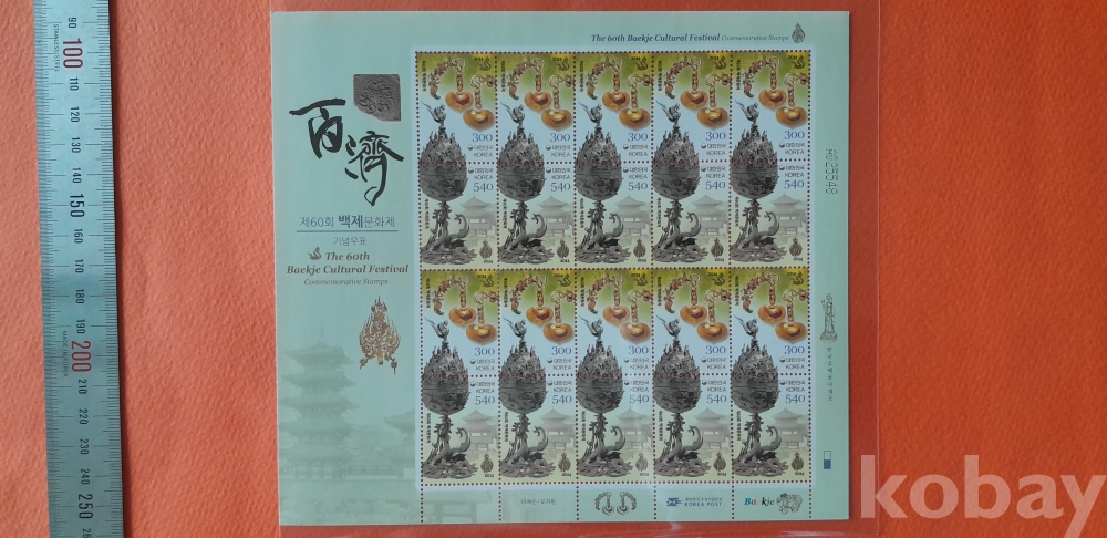 2014 제60회 백제문화제 기념(540원 10매 포함) 20매 전지 입니다.
