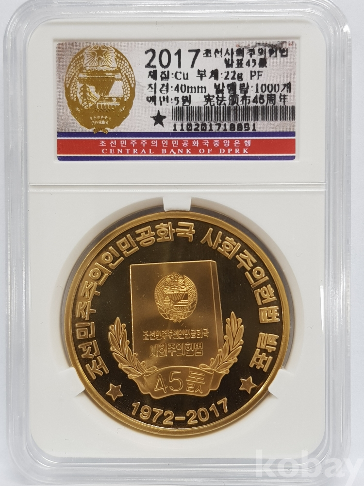 - 2017년(주체106) 조선사회주의헌법 발표 5원 프루프 인증 주화