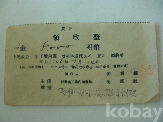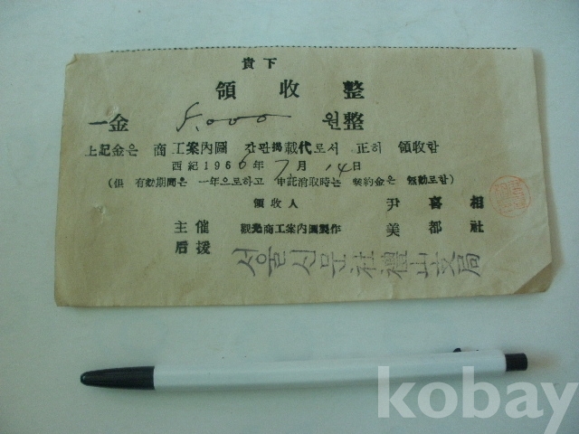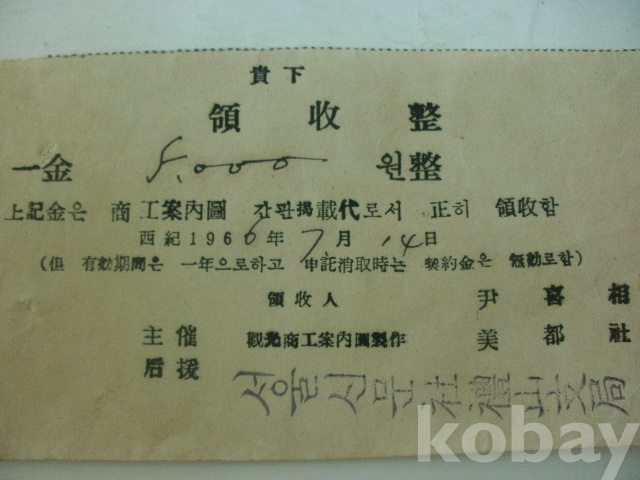 상공안내도 간판게재대 - 영수증 (1966년, 서울신문사 예산지국, 관광상공안내도제작 미도사)