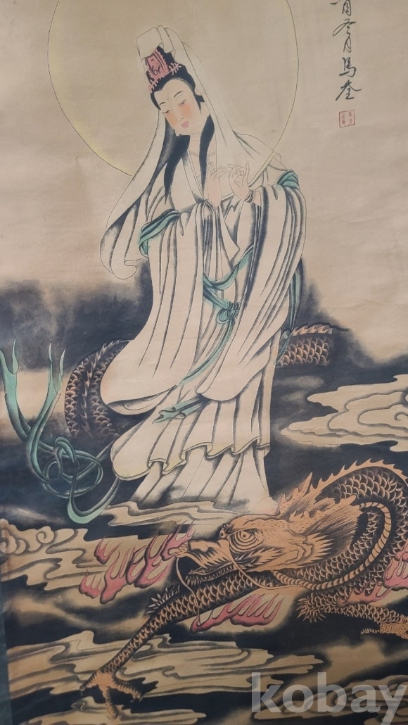 불화 그림이 그려진 족자화 입니다 사이즈도 좋고 작품도 나쁘지 않습니다