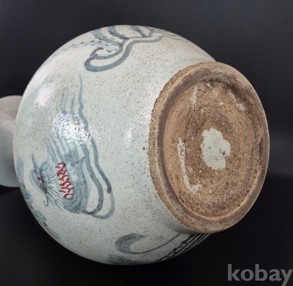 청화의 발색도 좋고, 특히 진사의 붉은 색이 아주 청명하여 감상용 백자로 손색이 없습니다.