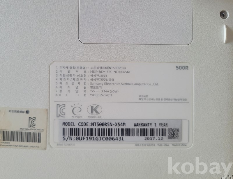삼성 노트북 (NT 500RSN) ------------------1점 입니다