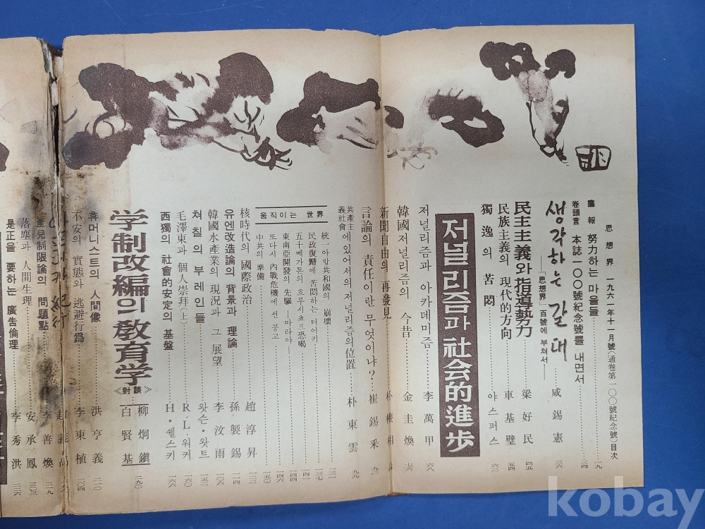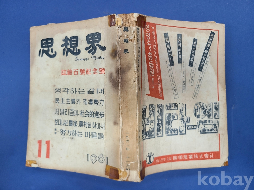▶사상계(1961년 11월호)/사상계사,428쪽/전체적으로 헐었고, 얼룩있음