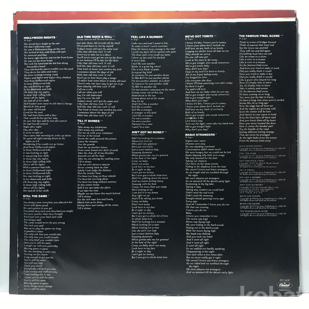 LP 30,900-125 Bob Seger & The Silver Bullet Band - Stranger in Town . 78 수입 자켓 EX 알판 EX