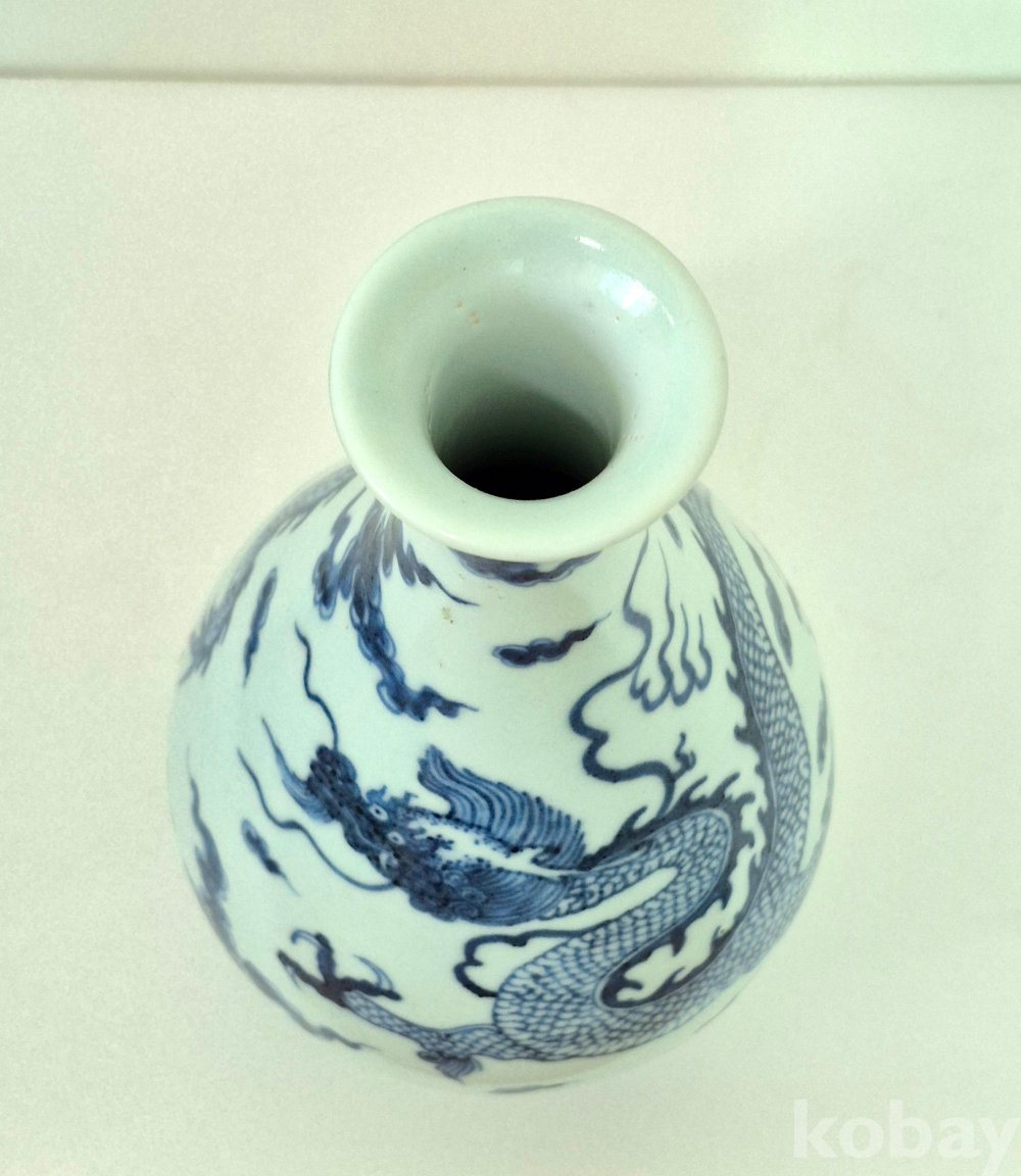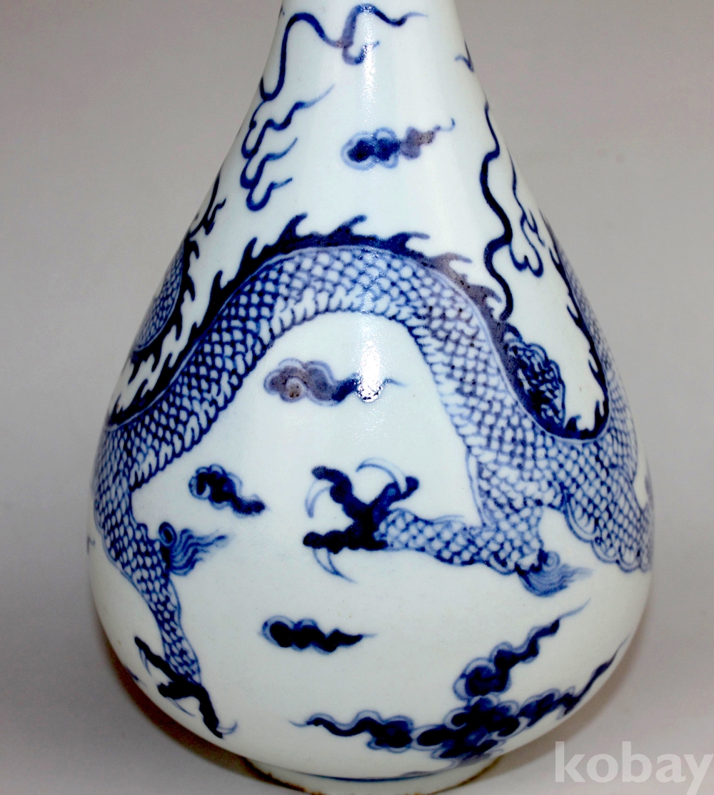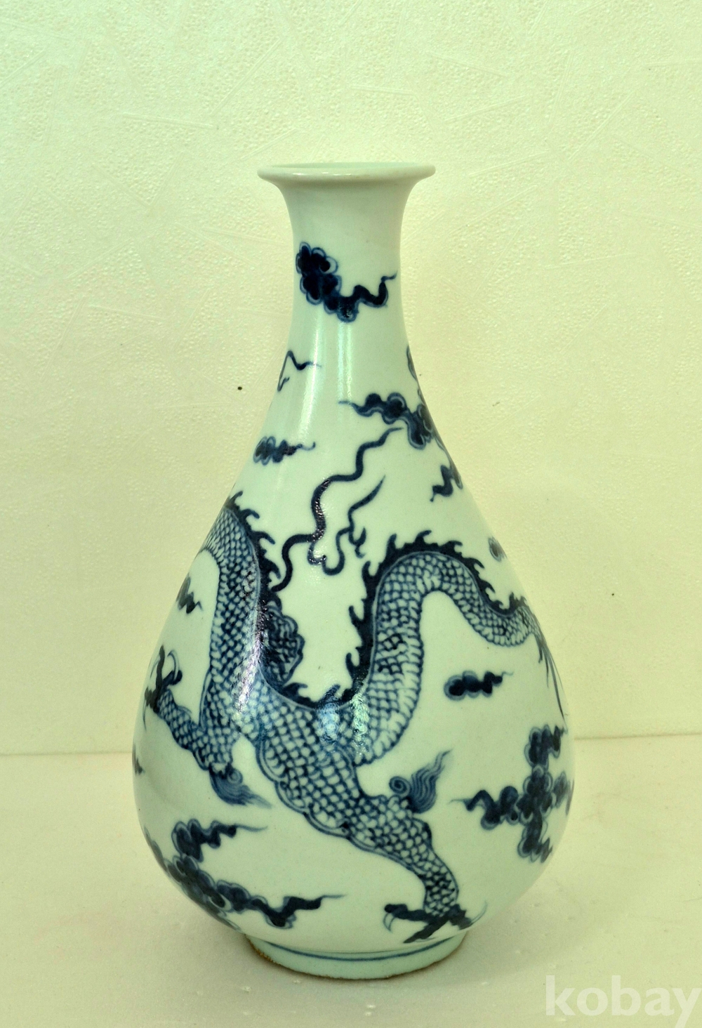 발톱3개의 용(三爪龍)이 몸 전체를 휘감아 생동감 있게 잘 그렸고, 눈부신 백자유는 약한 푸른
