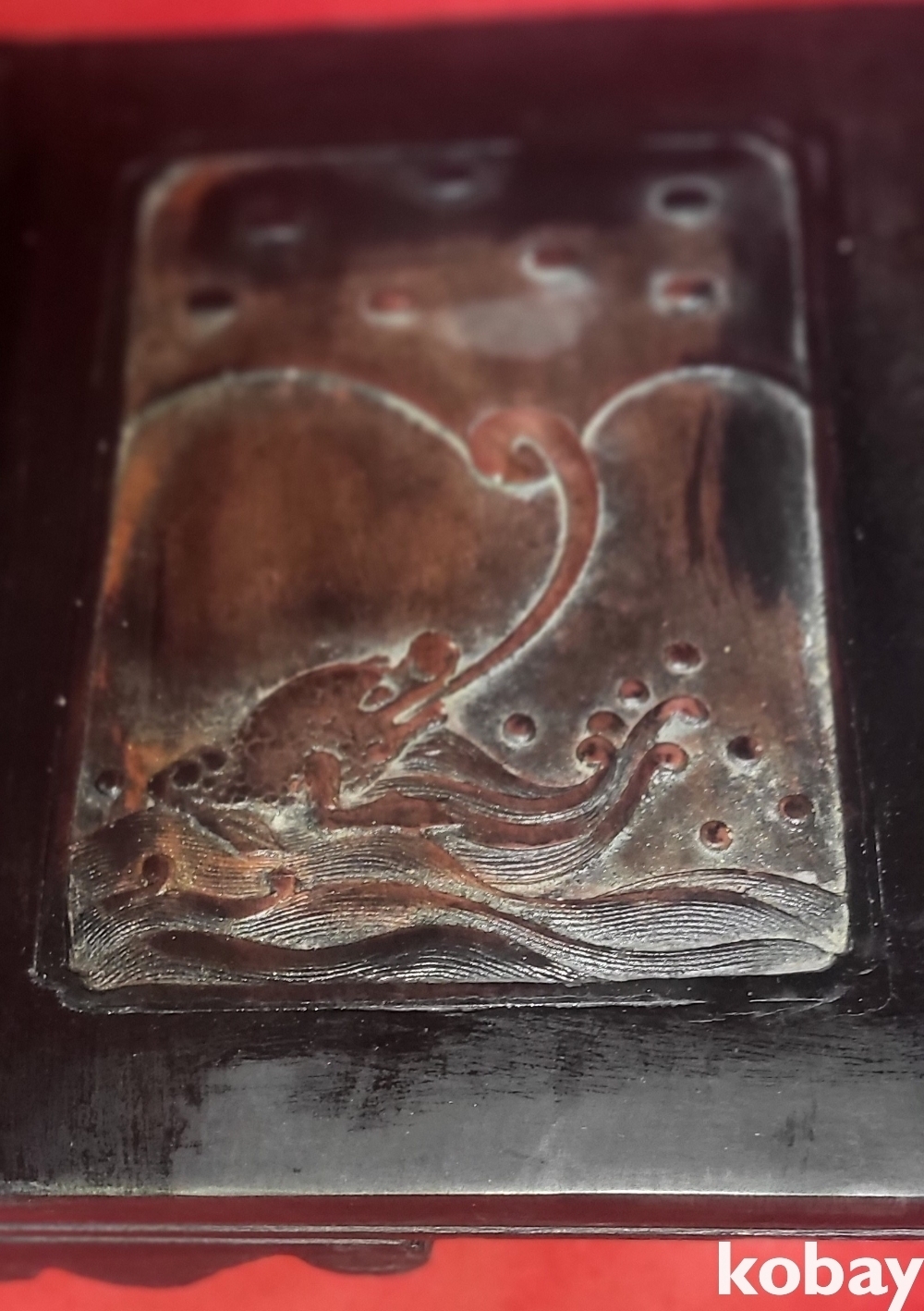 건륭6년 관지 보이는 등용문의 상징 물고기와 문양 일월(日月) 벼루입니다,