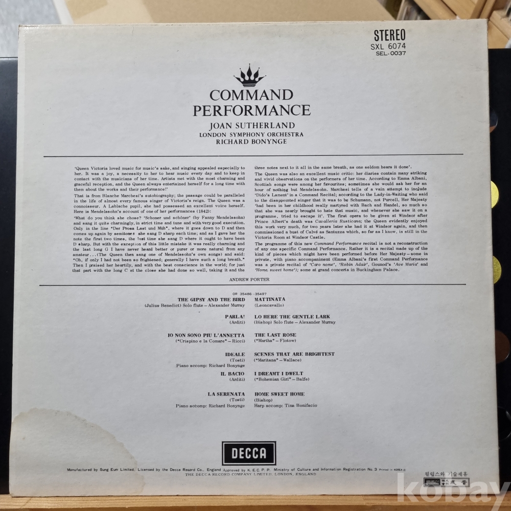 조안서덜랜드 - COMMAND PERFORMANCE DECCA 성음 19727년