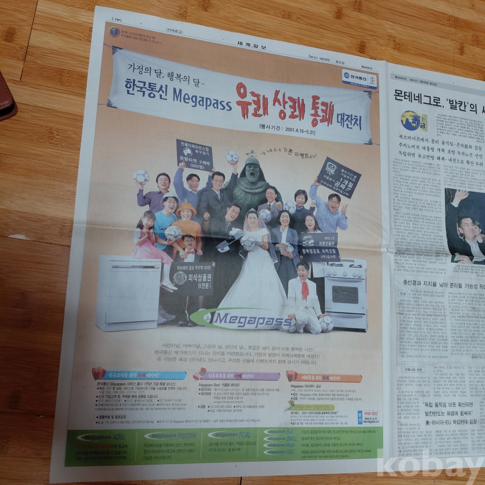 한국통신 유쾌 상쾌 통쾌 대잔치 ㆍLG전자 휘센 어어컨 광고 세계일보 2001년 4월30일 올려드립니다