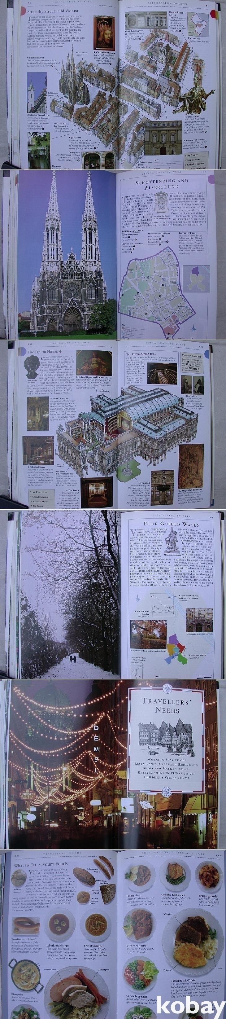 앞에 빈의 개관으로 지도 설명부터 역사시기별 소개가 있고 지역별로 소개한 다음 먹거리나 까페, 쇼핑 등을 설명하였다. 일러스트레이션과 박스설명을 활용한 요약식 설명이 잘 되어 있다.