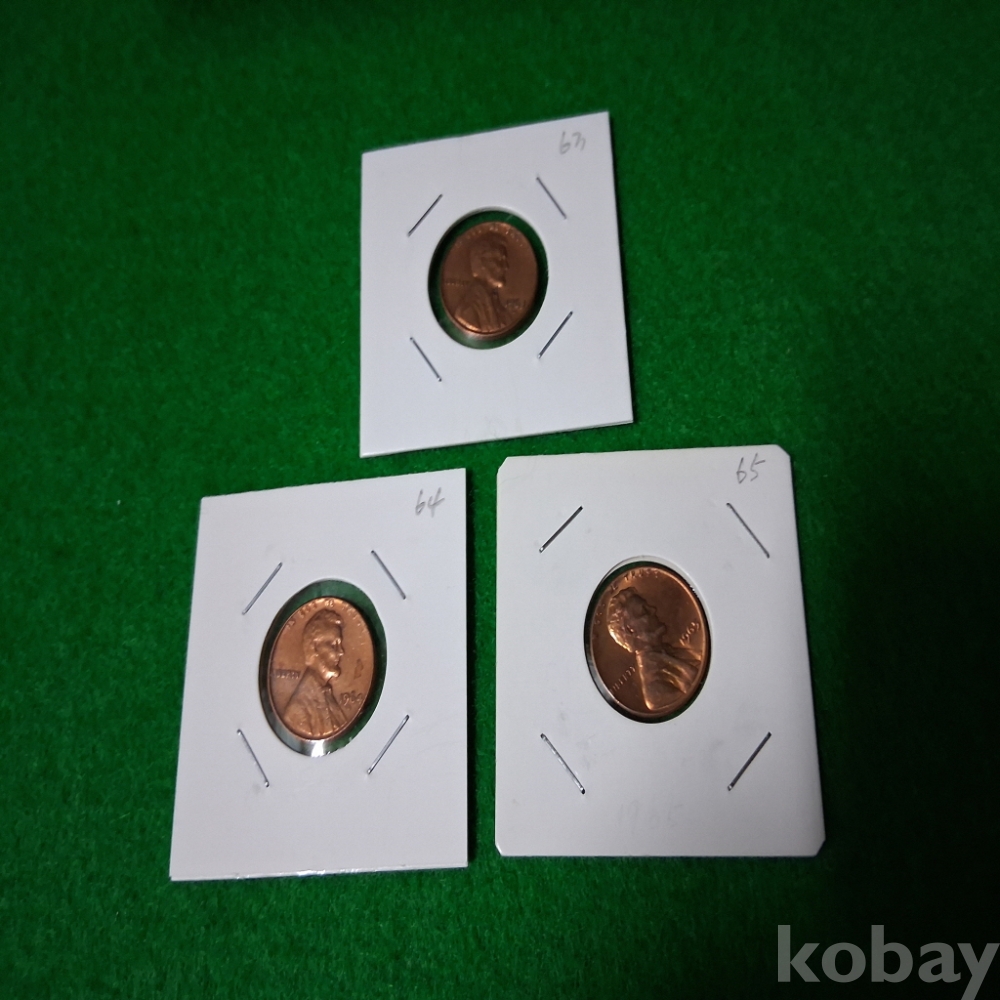 미국 1963,64,65년 링컨1센트 3매 사용제