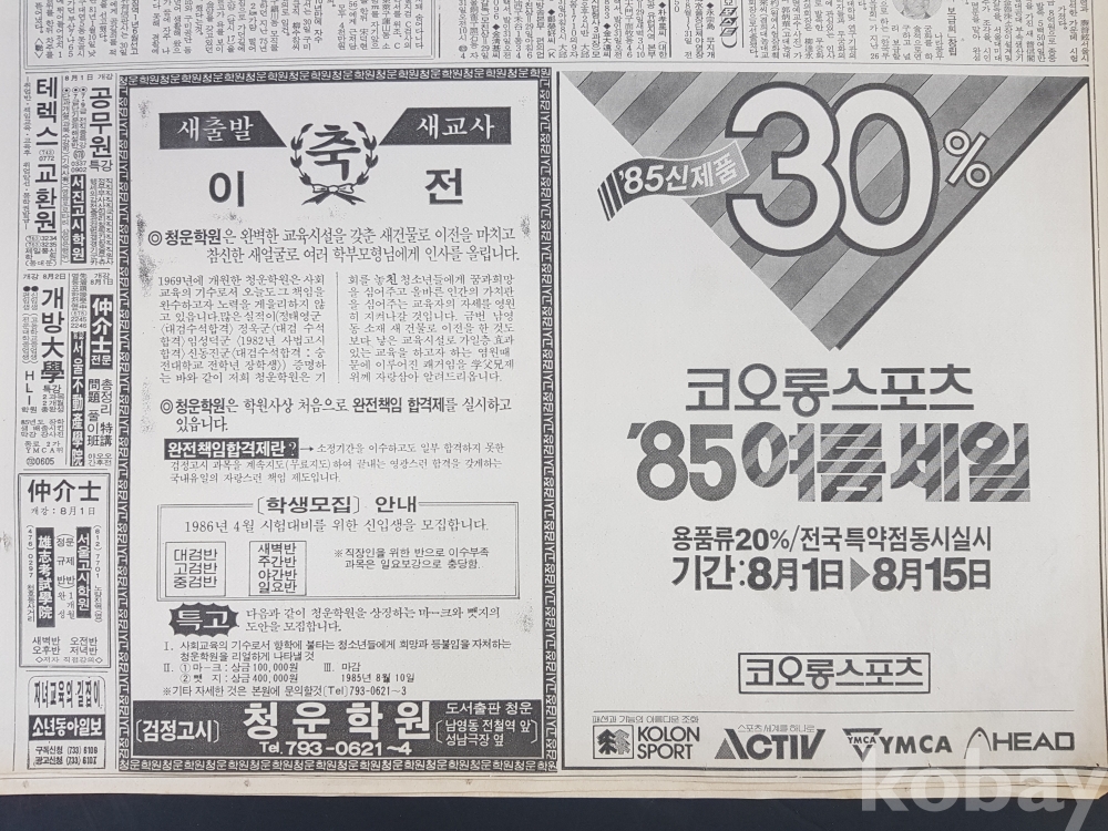 **** 1985.07.30(동아일보)/코오롱스포츠 '85여름세일 광고포함/약 10면