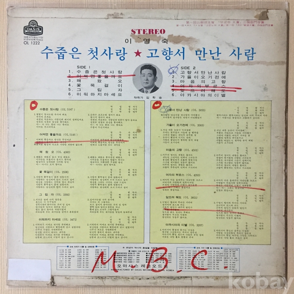. 가요음반 대부분은 휘어짐이나 손상을 방지하기 위해 무지싱글자킷을 하나 더 사용하여 보관되었던 음반들입니다.