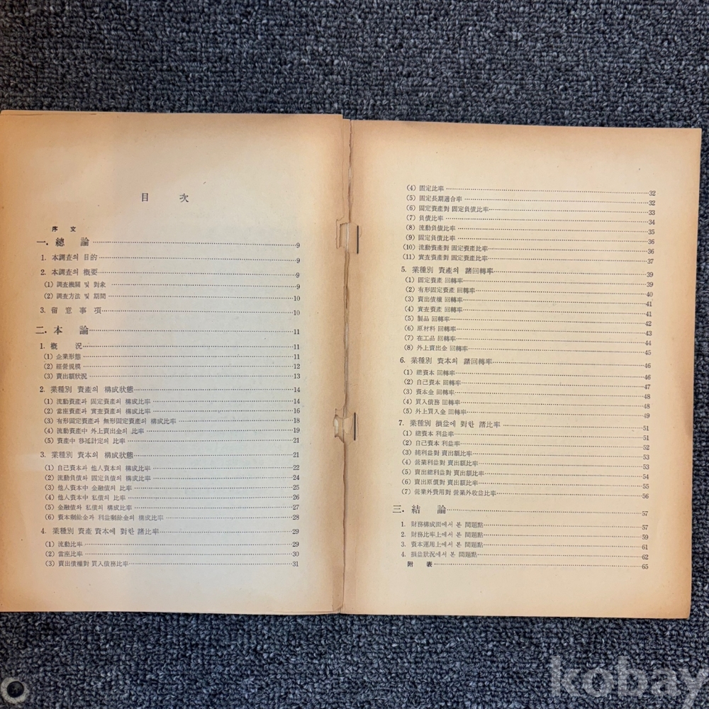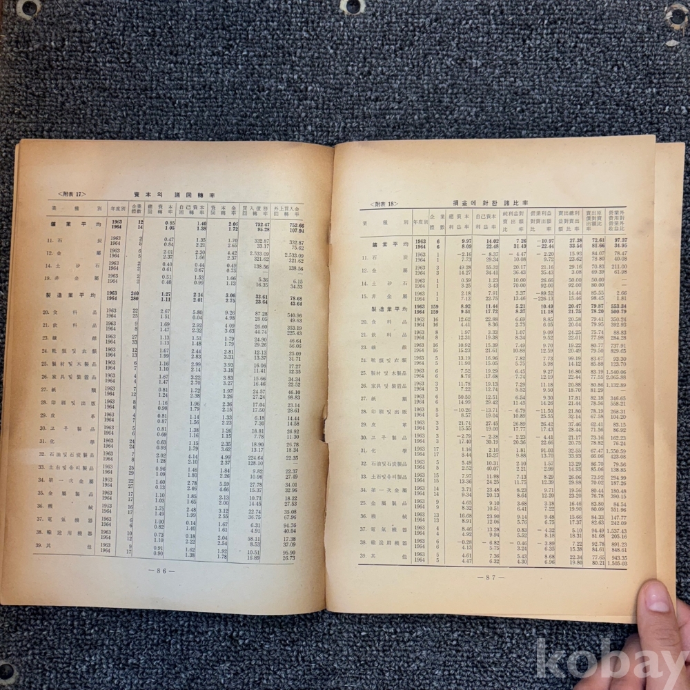 [희귀본, 한국현대사, 제3공화국, 산업화] 한국 생산성 본부, <중소기업의 업종별 재무구조분석 1965.3>, 생산성연구소, p. 87, 상태 중하급(젖은 흔적, 사진참조)