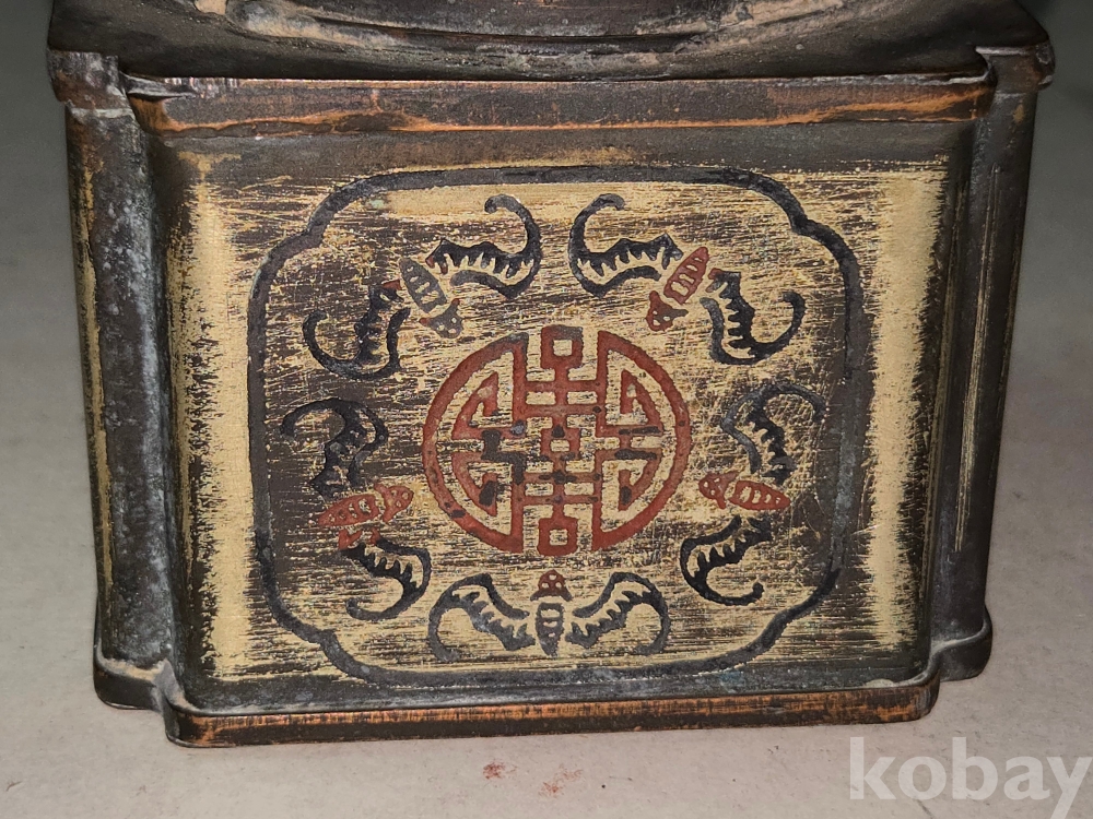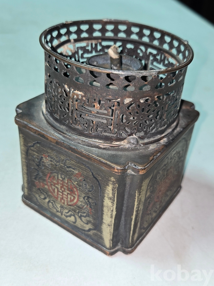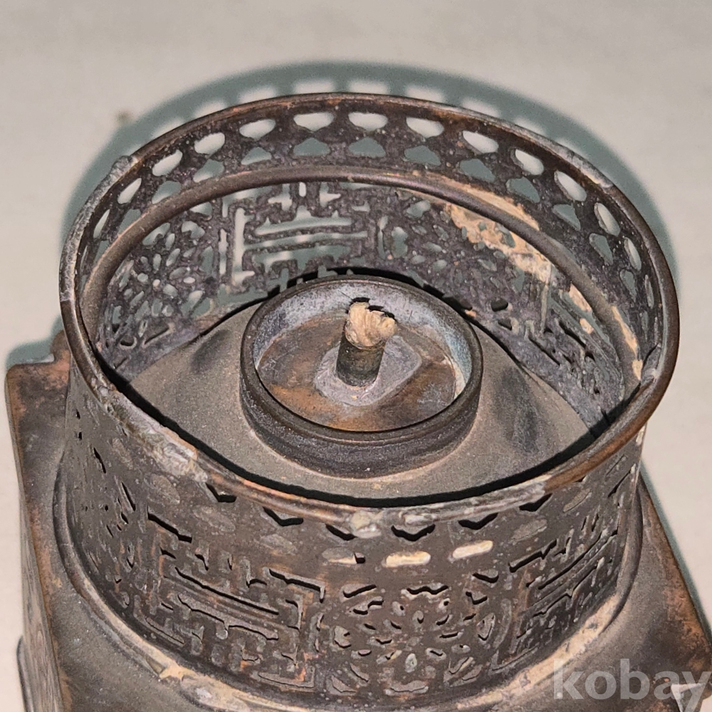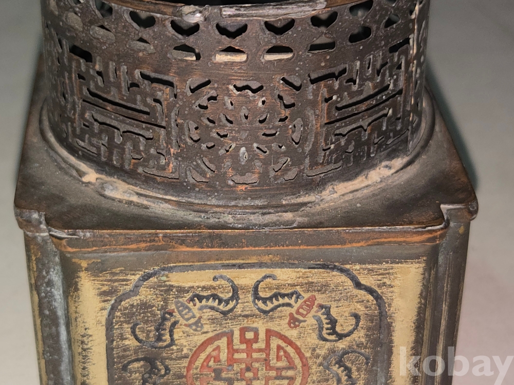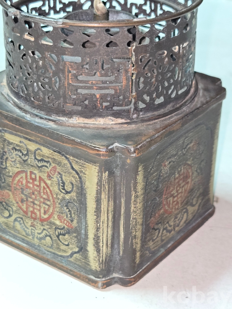길상문 박쥐문양 사각 동재질의 호롱 (유등)