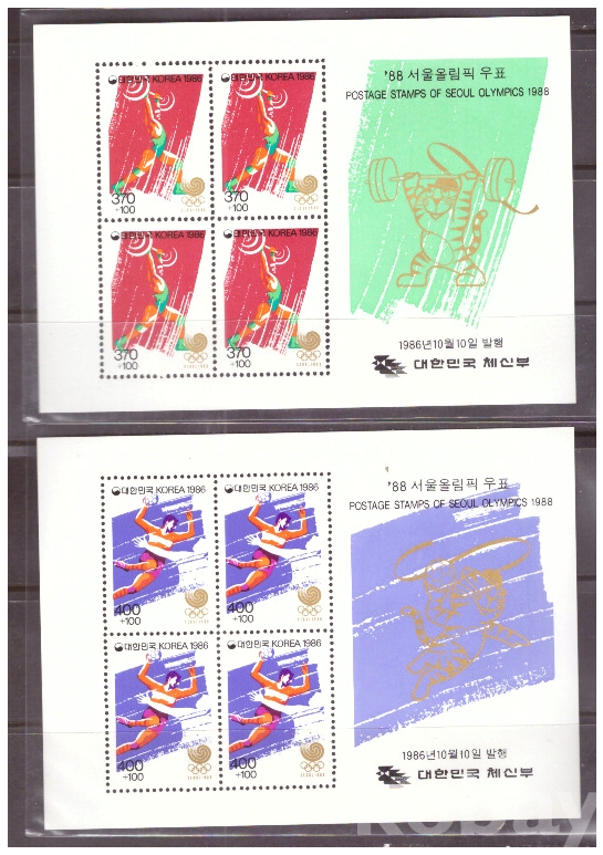 (서울올림픽) 1986.10.10 '88 서울올림픽(제6집) 2완 sheet of 4 MNH