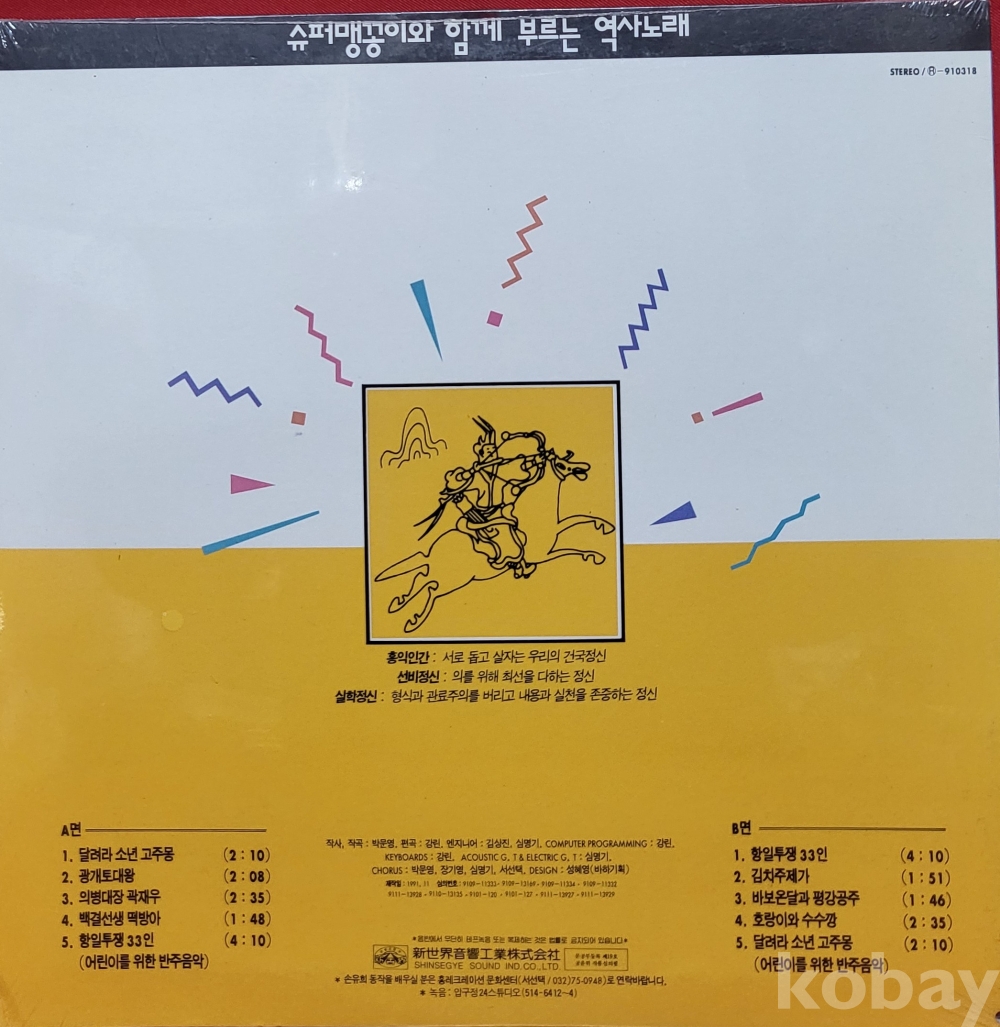 "명품엘피 미개봉 " 슈퍼 맹꽁이와 함께 부르는 역사노래" 미개봉 LP판입니다,