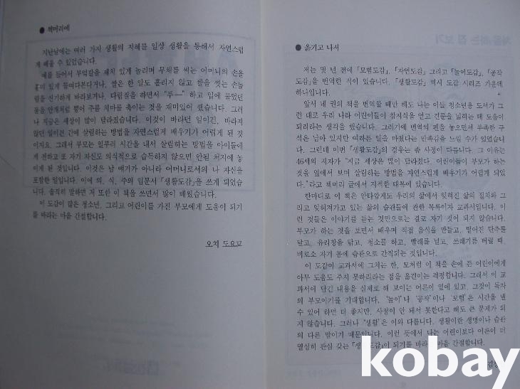 저자와 옮긴이의 머리말이 있다. <모험도감> <자연도감> <공작도감> 등을 번역한 이후 <생활도감>은 저자가 "지금 세상은 많이 달라졌다. 어린이들이 부모가 하는 것을 옆에서 보며 살림하는 방법을 자연스럽게 배우기가 어렵게 되었다"라고 한 말에 주목하며 "우리의 삶에서 잊혀진 삶의 절차와 그리고 잊혀져가고 있는 삶의 습관들에 관한 목록이자 교과서"라고 하였다.