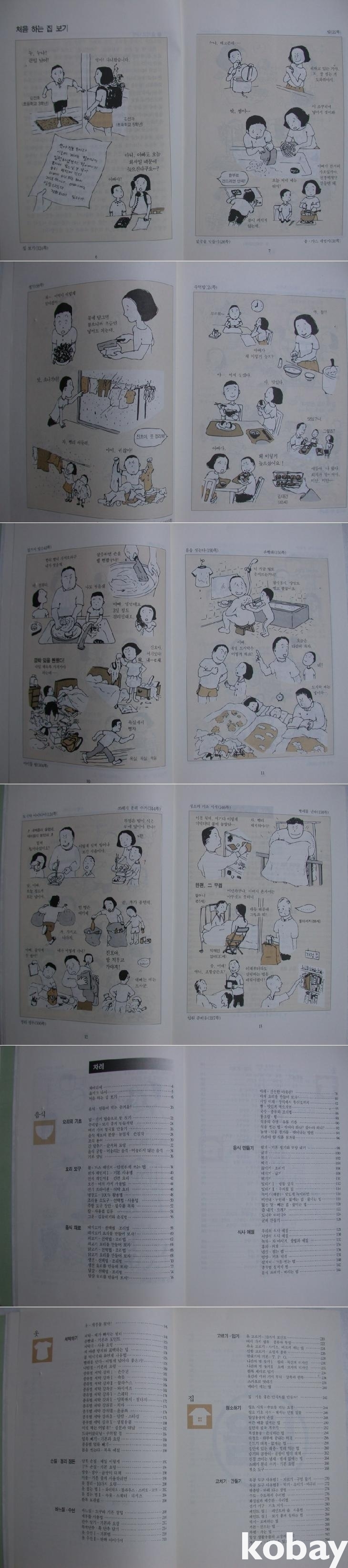 집 보기부터 밥 짓기, 요리하기, 식사 예절, 설거지 법, 손빨래, 바느질하기, 한복 입기, 청소하기, 수도꼭지 수리하기, 정리정돈하기, 응급처치 등에 대해 그림으로 설명하였다. 일본책을 옮기며 밥상 모양이나 한복입기 등에서처럼 일본과 다른 부분을 별다른 설명 없이 우리의 생활모습으로 대체해 놓았다.