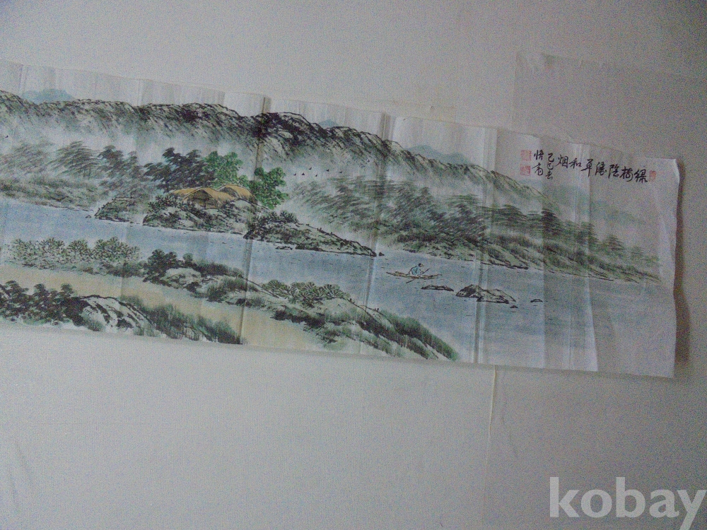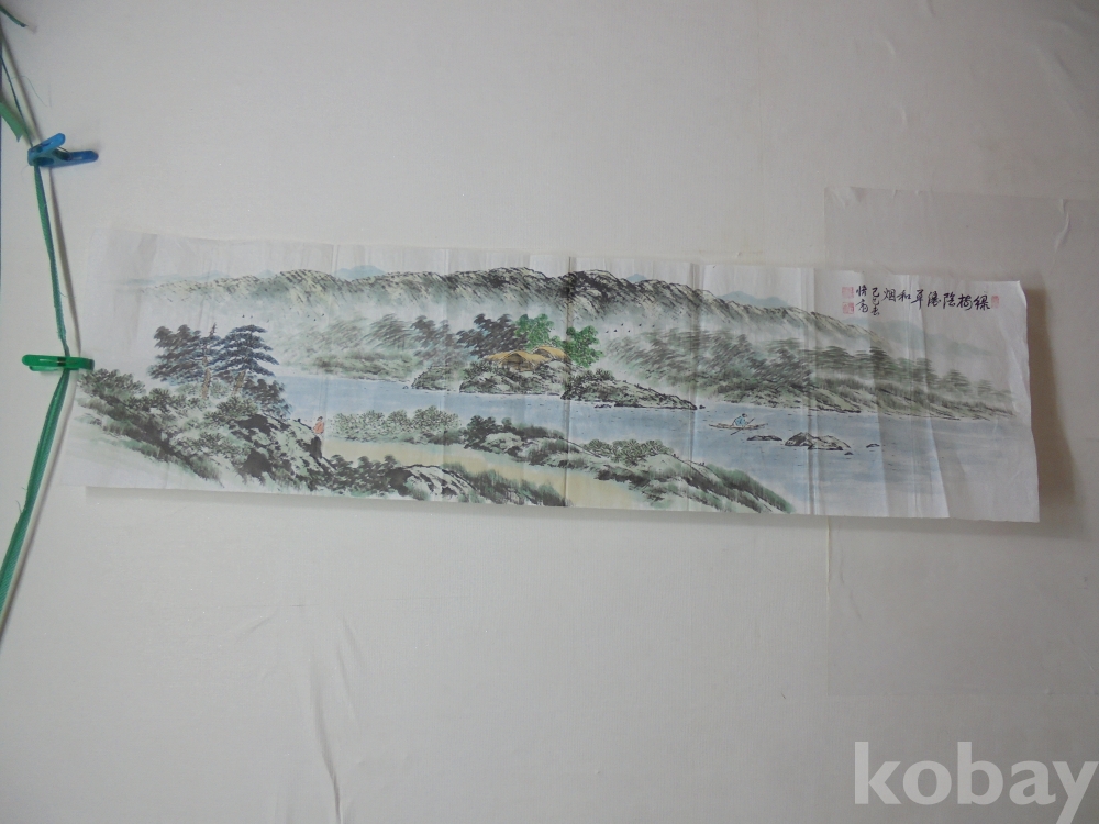한국화그림현판 ㅡ3ㅡ강가고향풍경