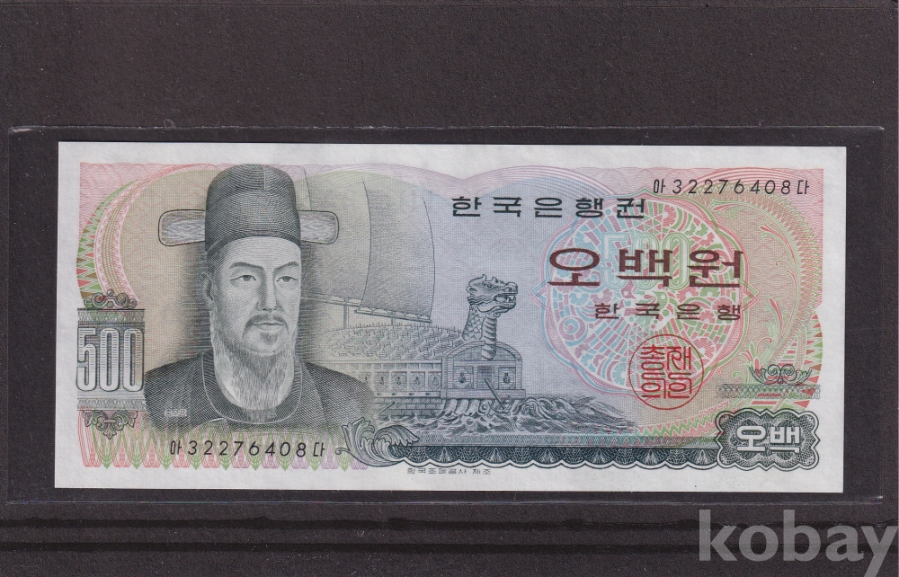 - 한국은행 1973년 이순신 오백원 32포인트 극미 (+)지폐