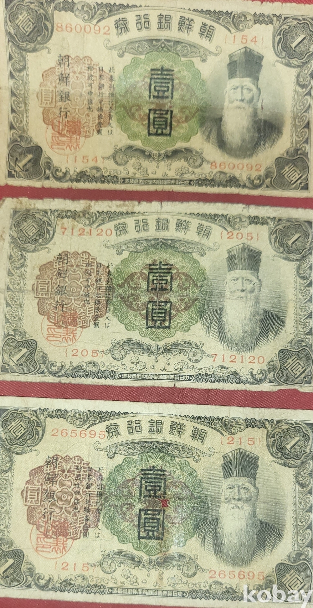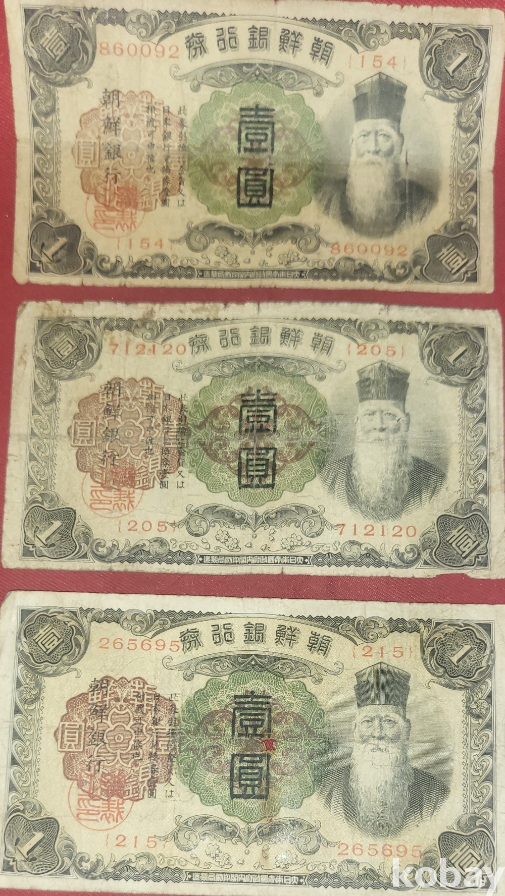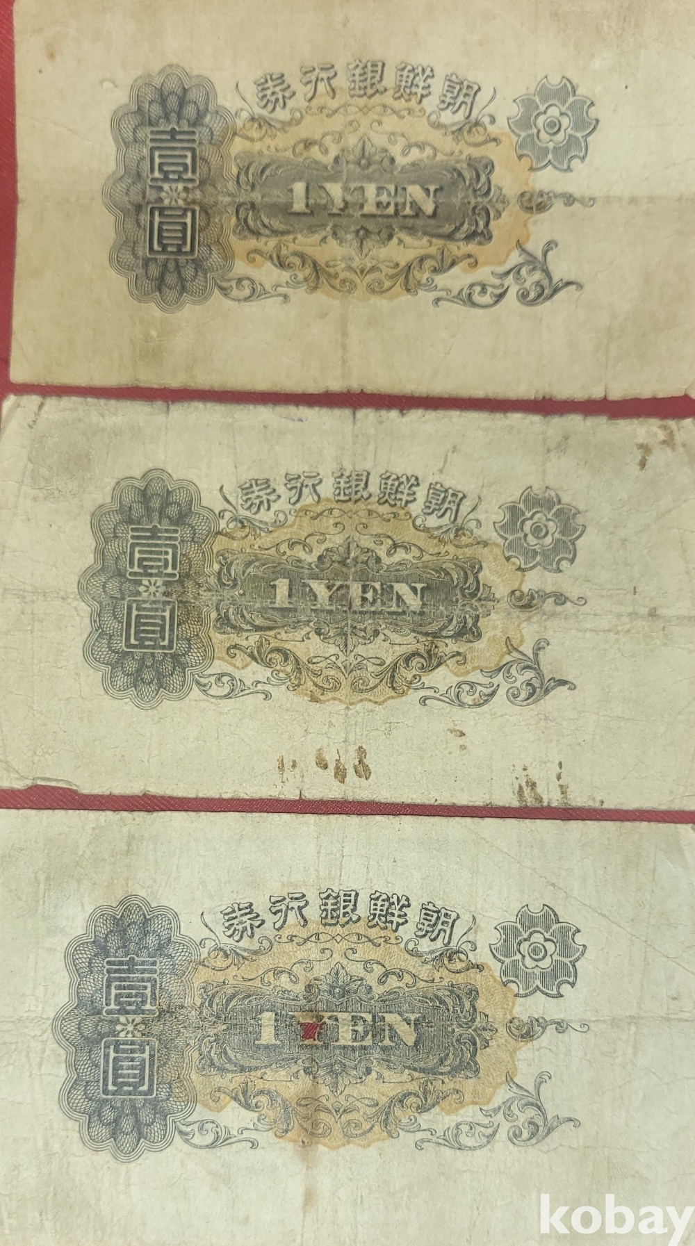 조선은행권 일원짜리 지폐 3장 일괄입니다,